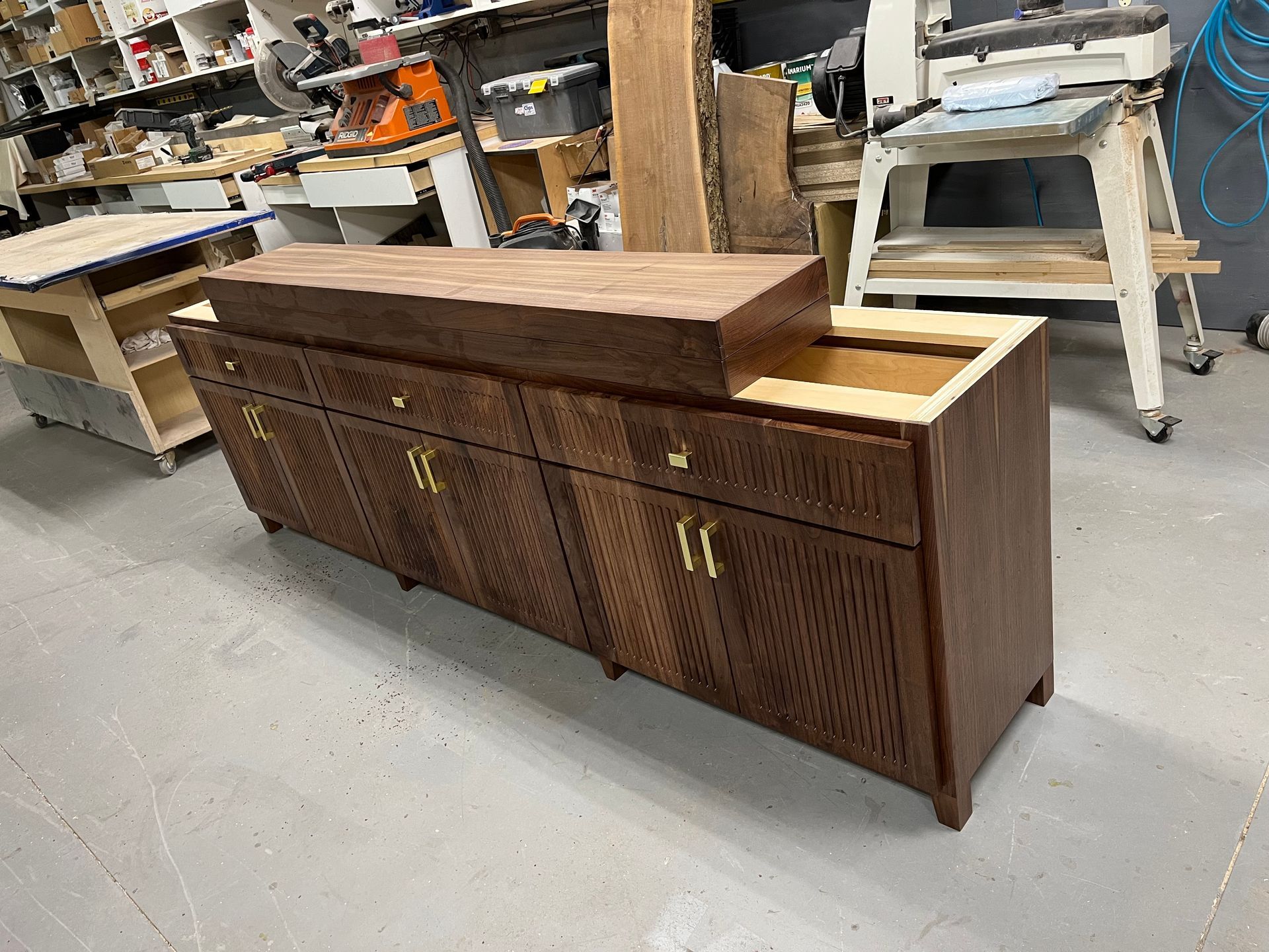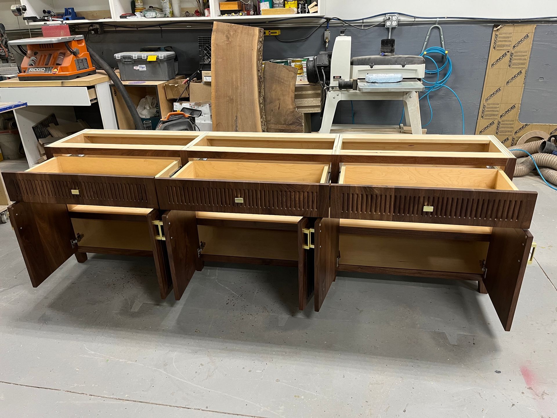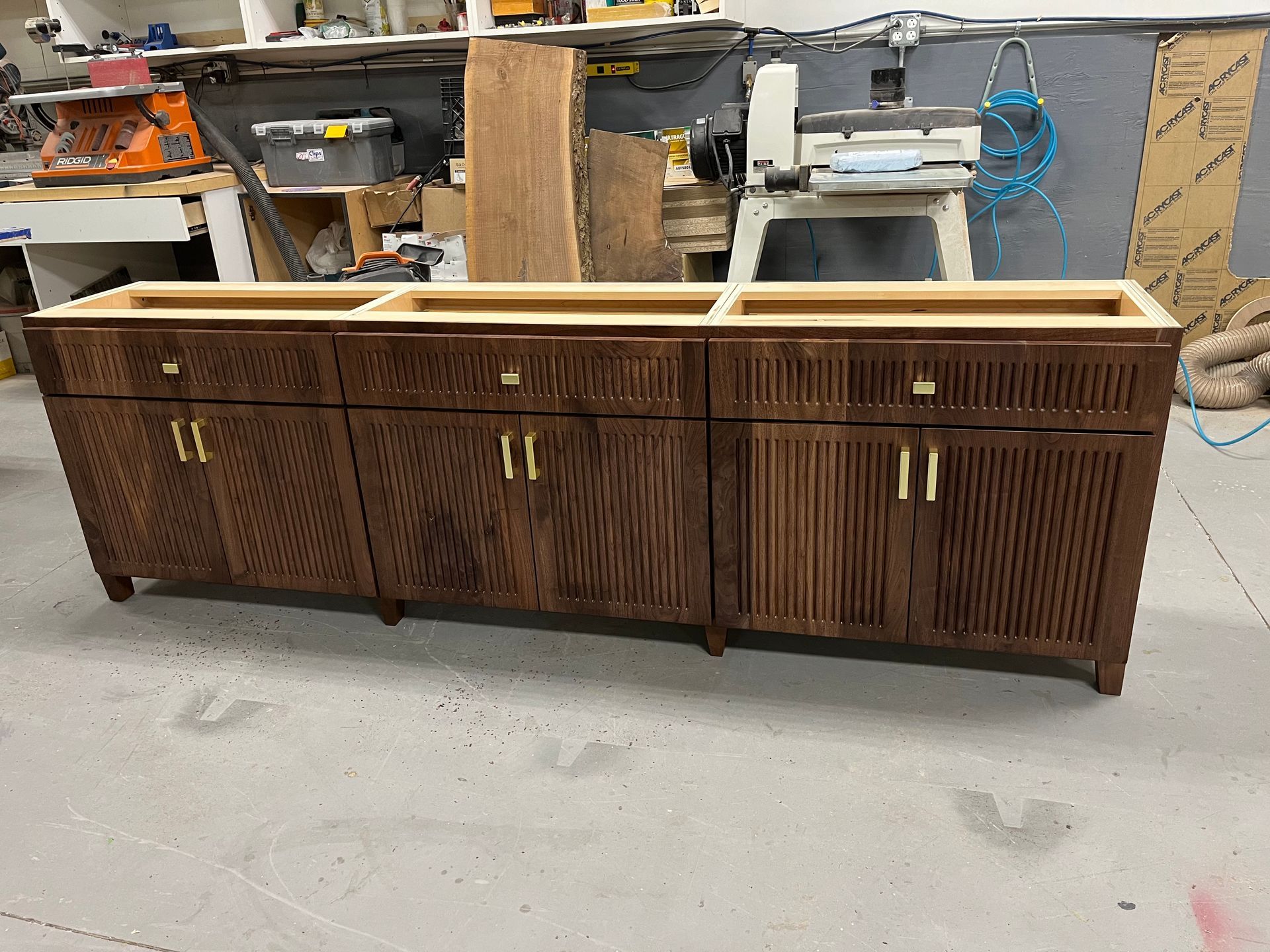 Pretty self explanatory with the title but good lawd this is a beautiful piece! The customers and myself couldn't be happier with how this turned out. These fluted doors and drawer fronts were custom made on the CNC and everything was pre finished at the shop before installation. There is even a silverware insert that can put into any drawer.