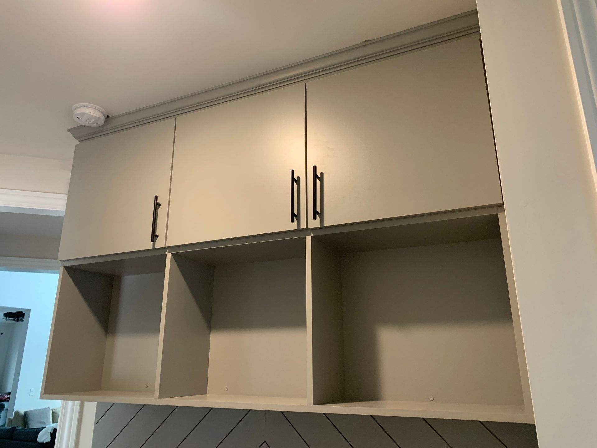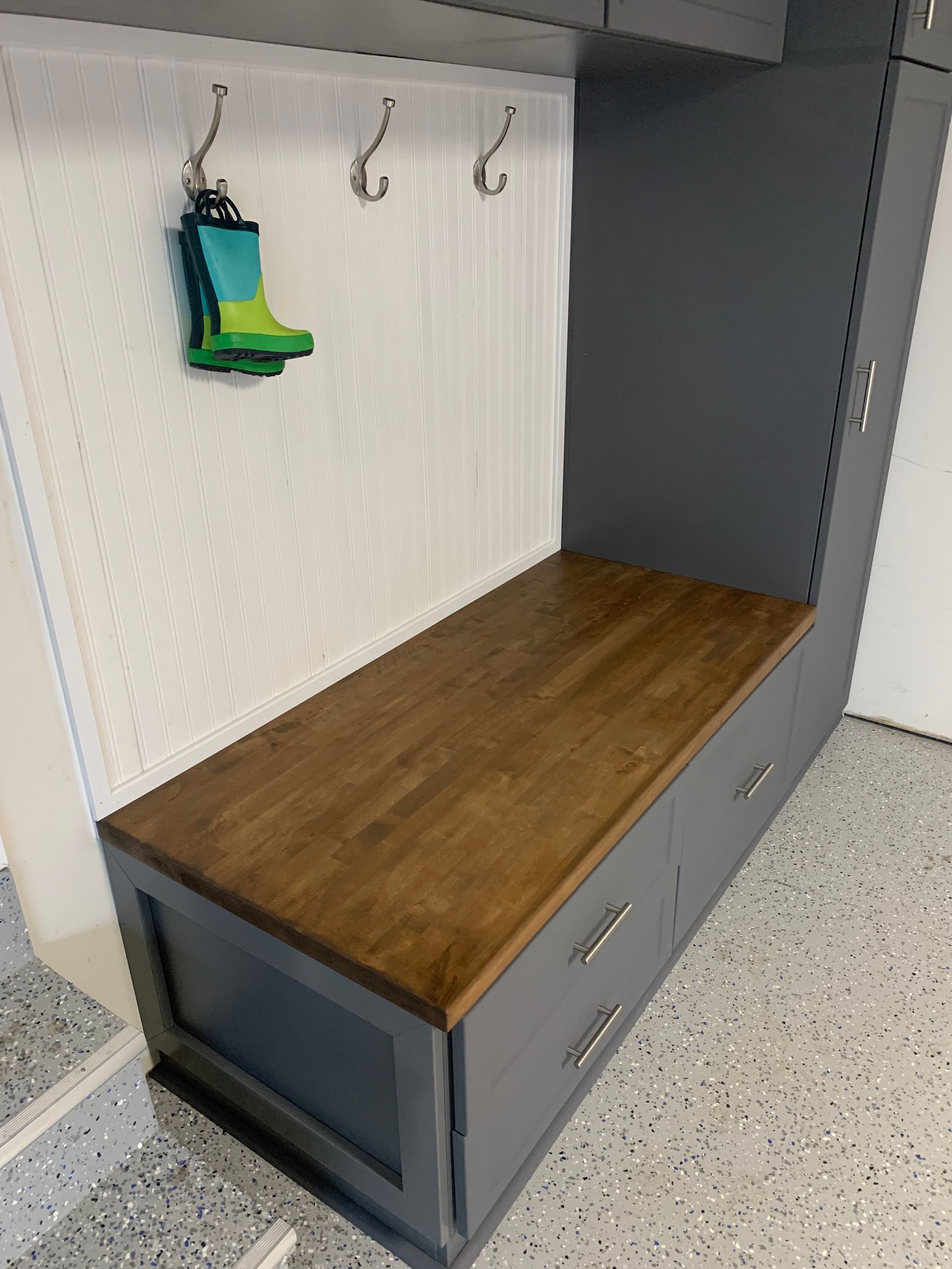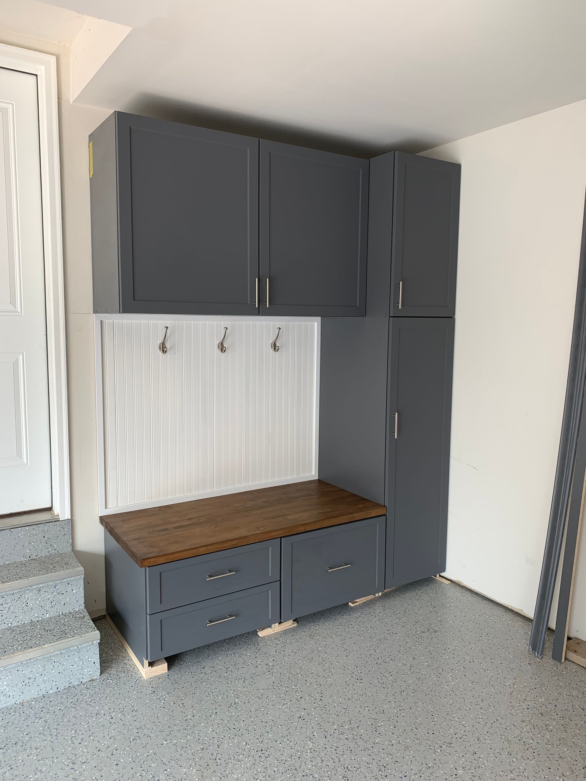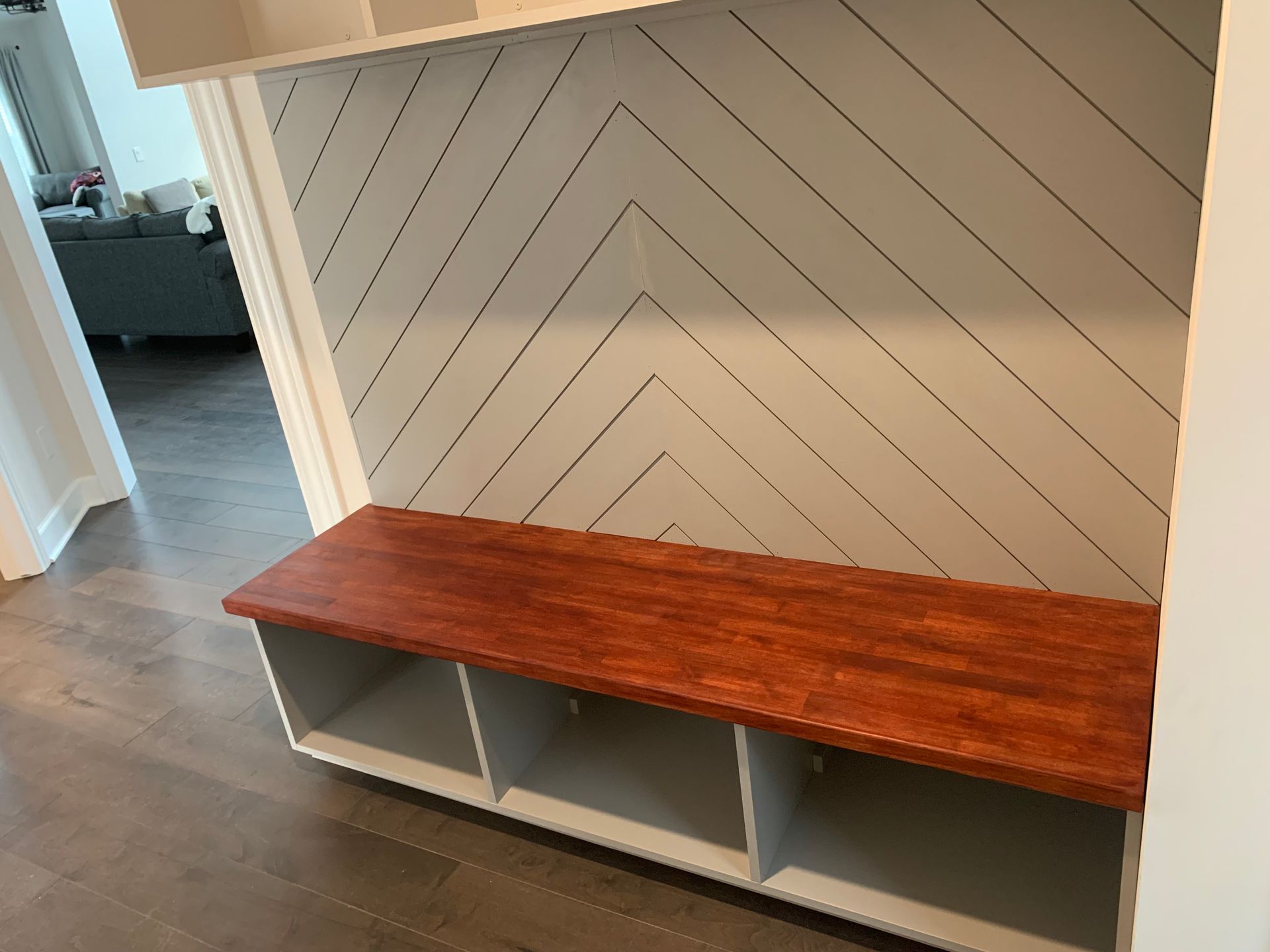 Since moving into a larger shop with access to large format machinery and pre-finished melamine materials, I've been designing and building quite a few mudroom benches with various closets, shelves, cabinets, trim, etc... These are some examples of what I've done. It's an easy and inexpensive way to really change the look and organization of a space!