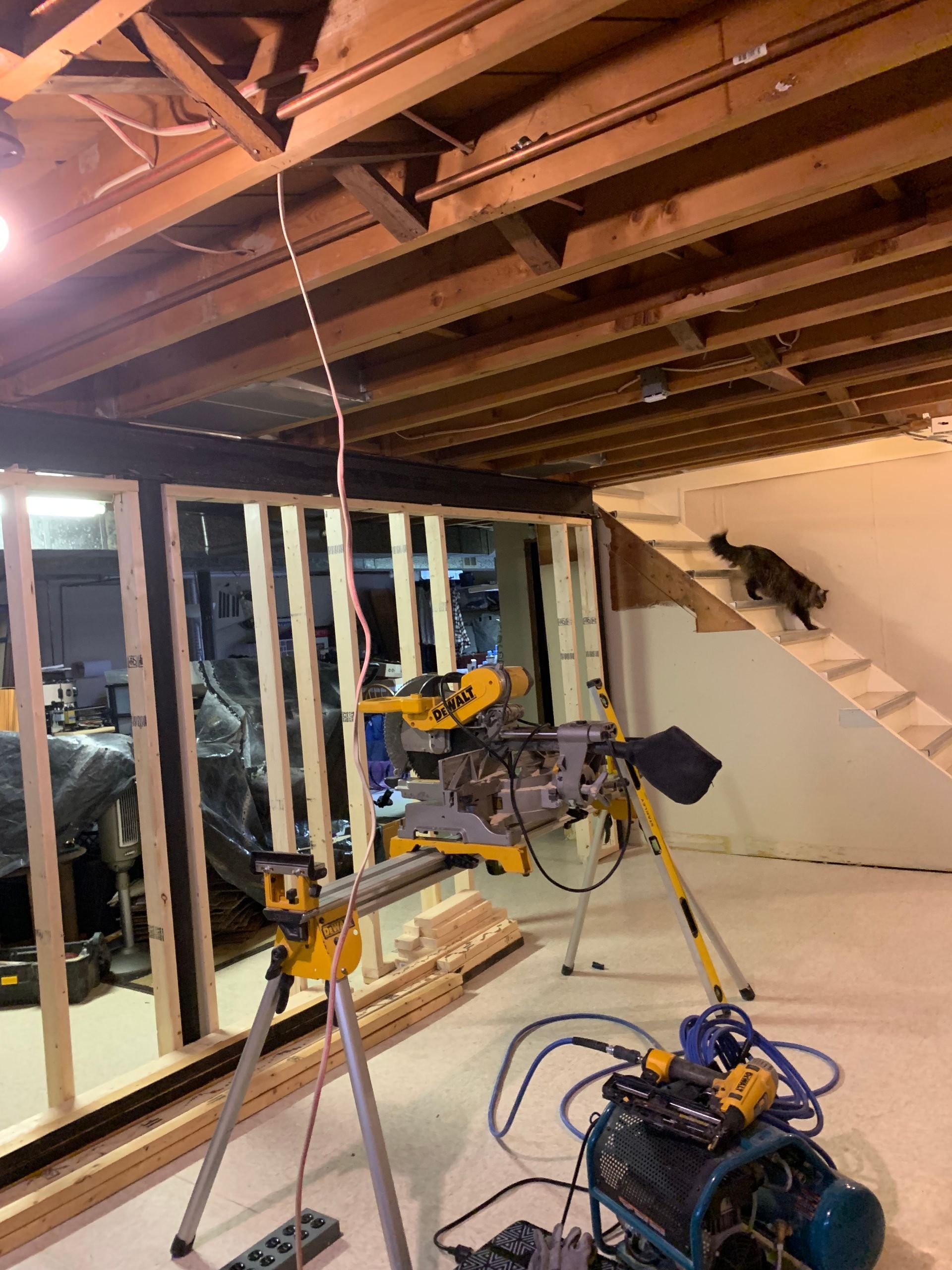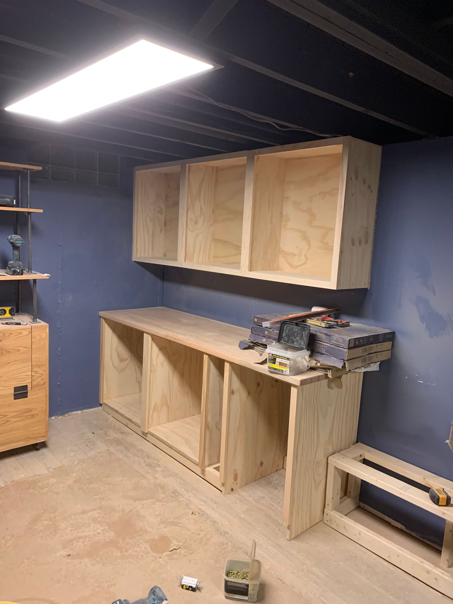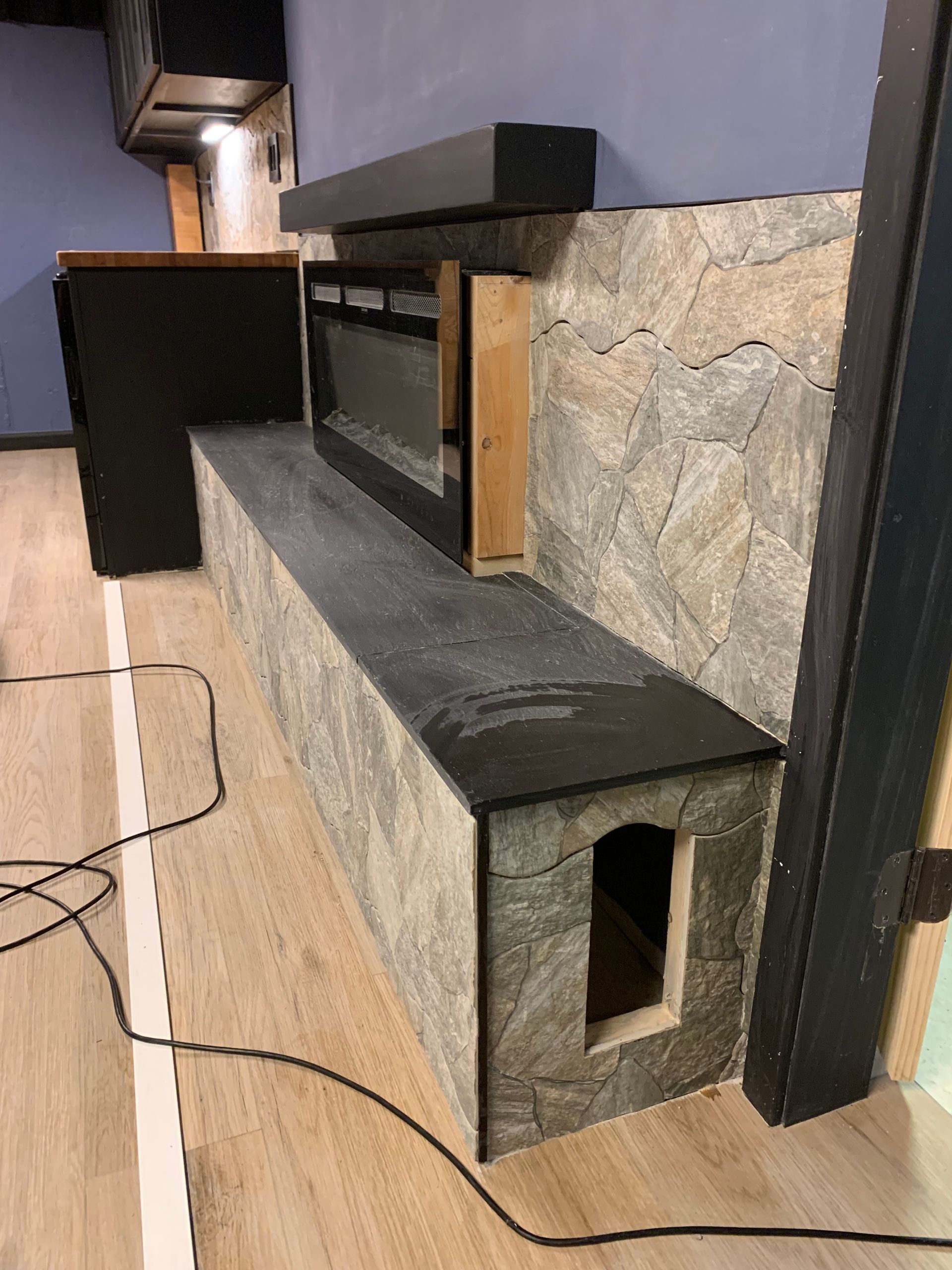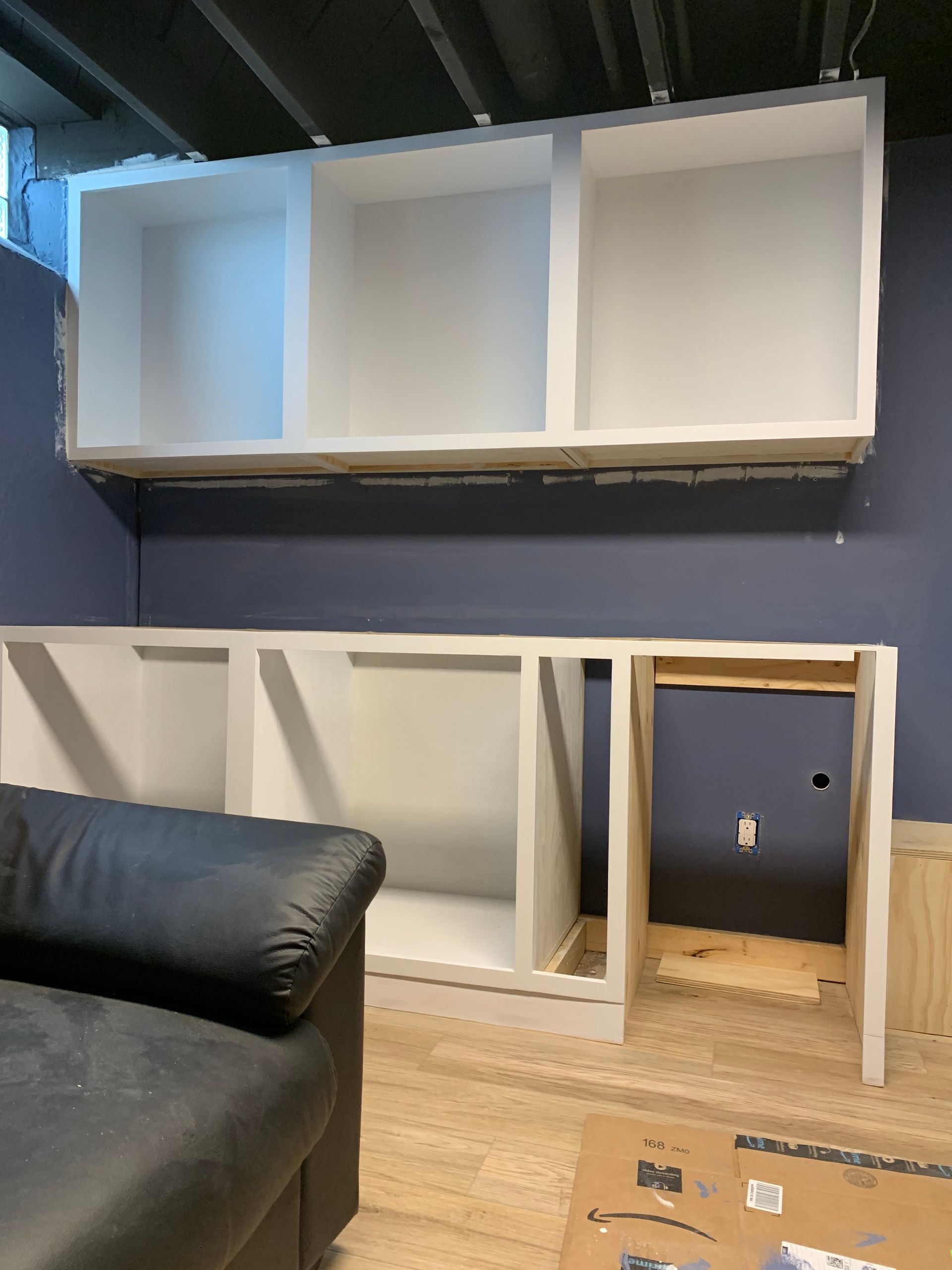 We decided to finish part of our basement as a theater/bar/hangout space and these are the results. I was all designed by my wife and I and completely built and installed by me. I had a little help from Warren with the flooring and Alex from Expertise painting with the mudding and painting. Custom cabinetry, butcher block countertops, stair cubby shelves, stair rail, mantle, fireplace, doors, lighting, furniture, etc... Let me know what you think!