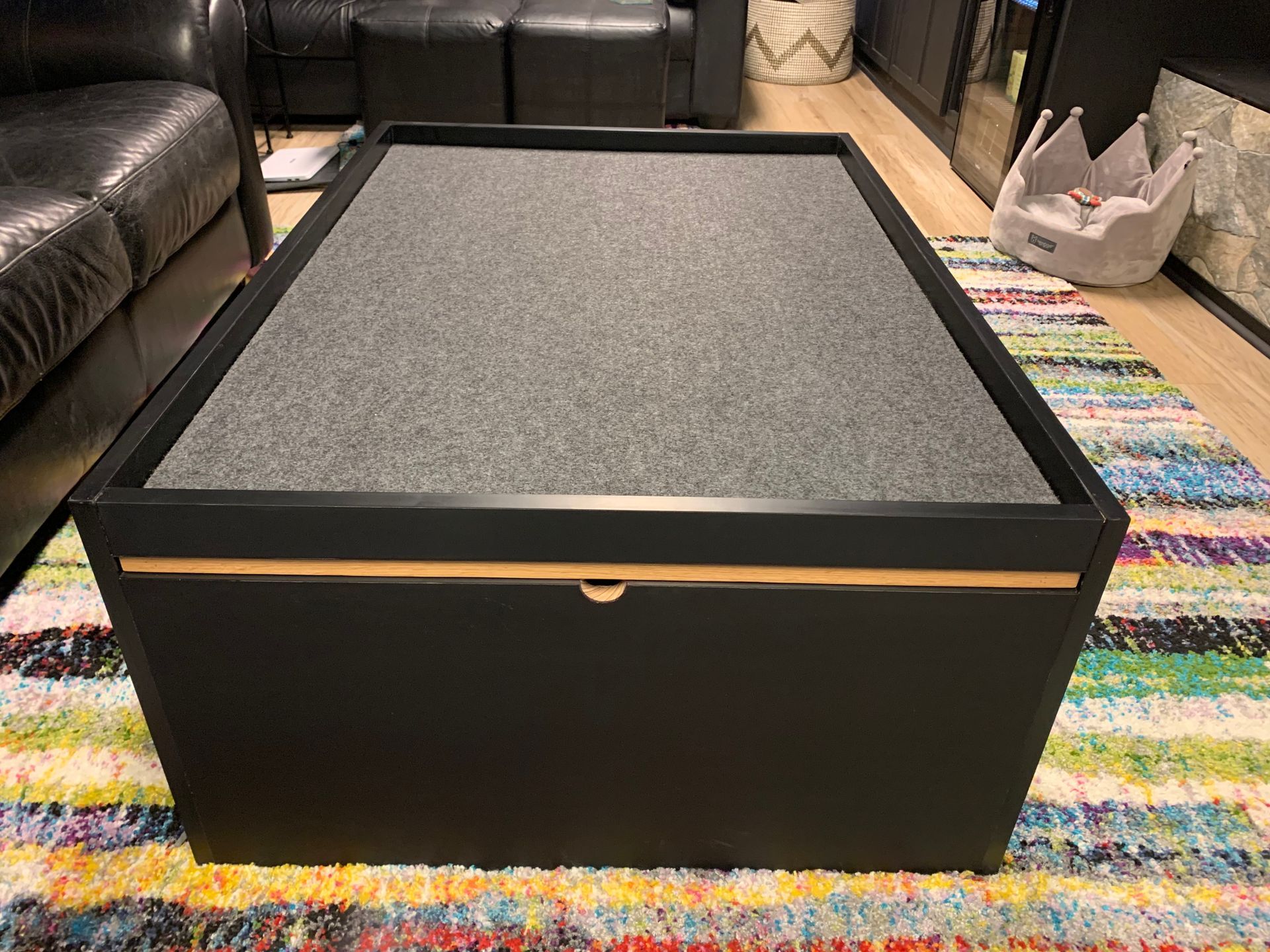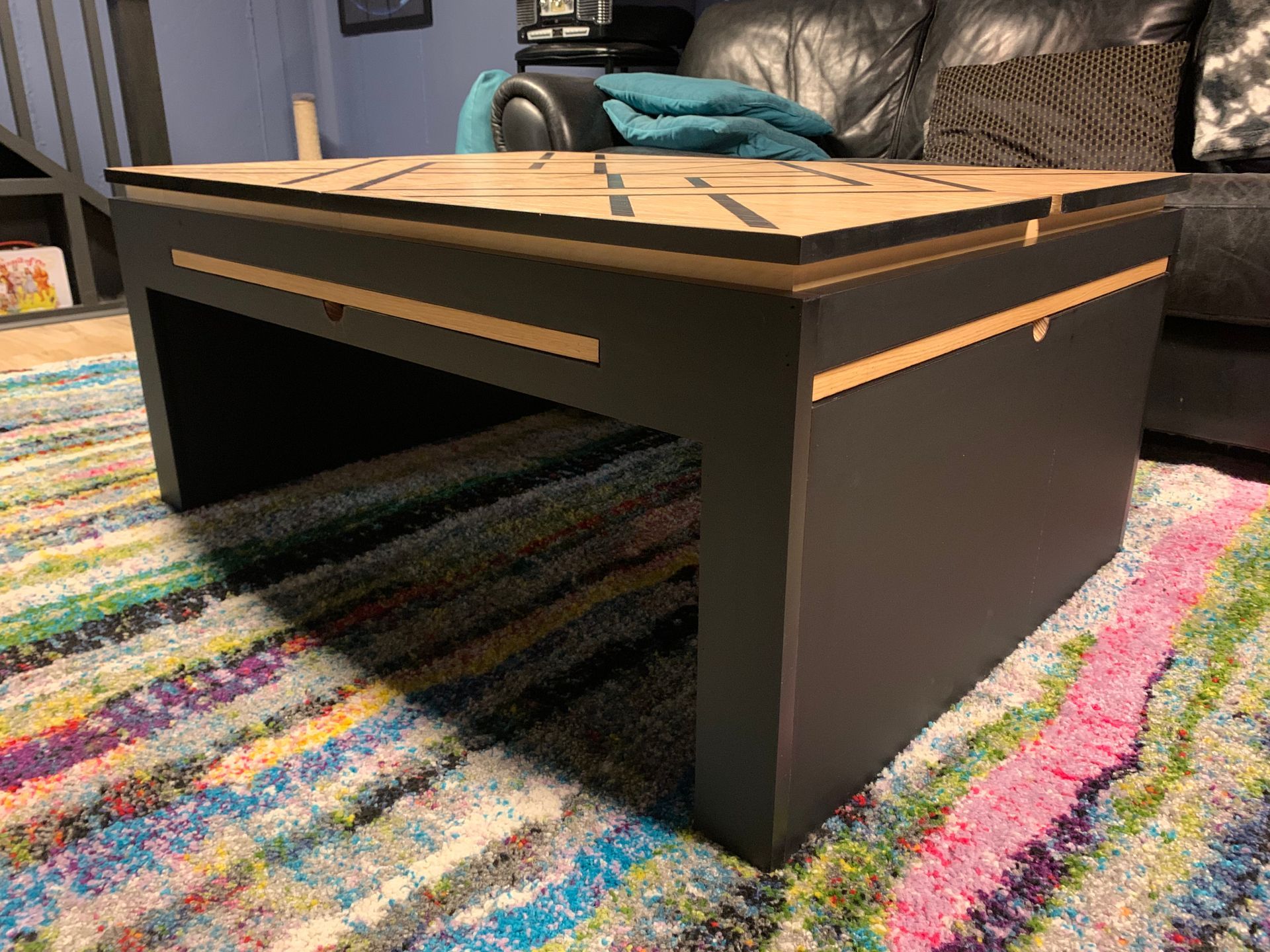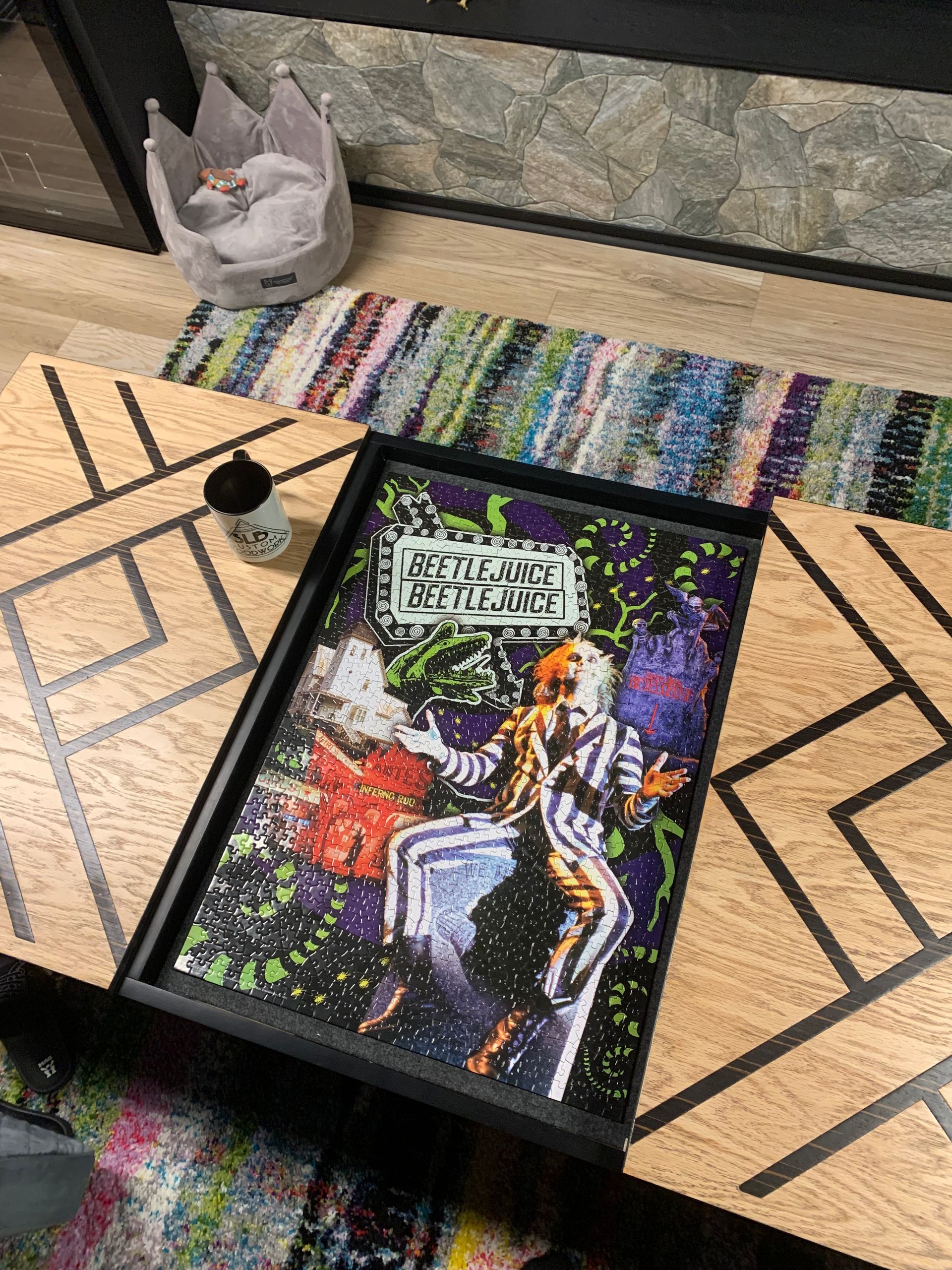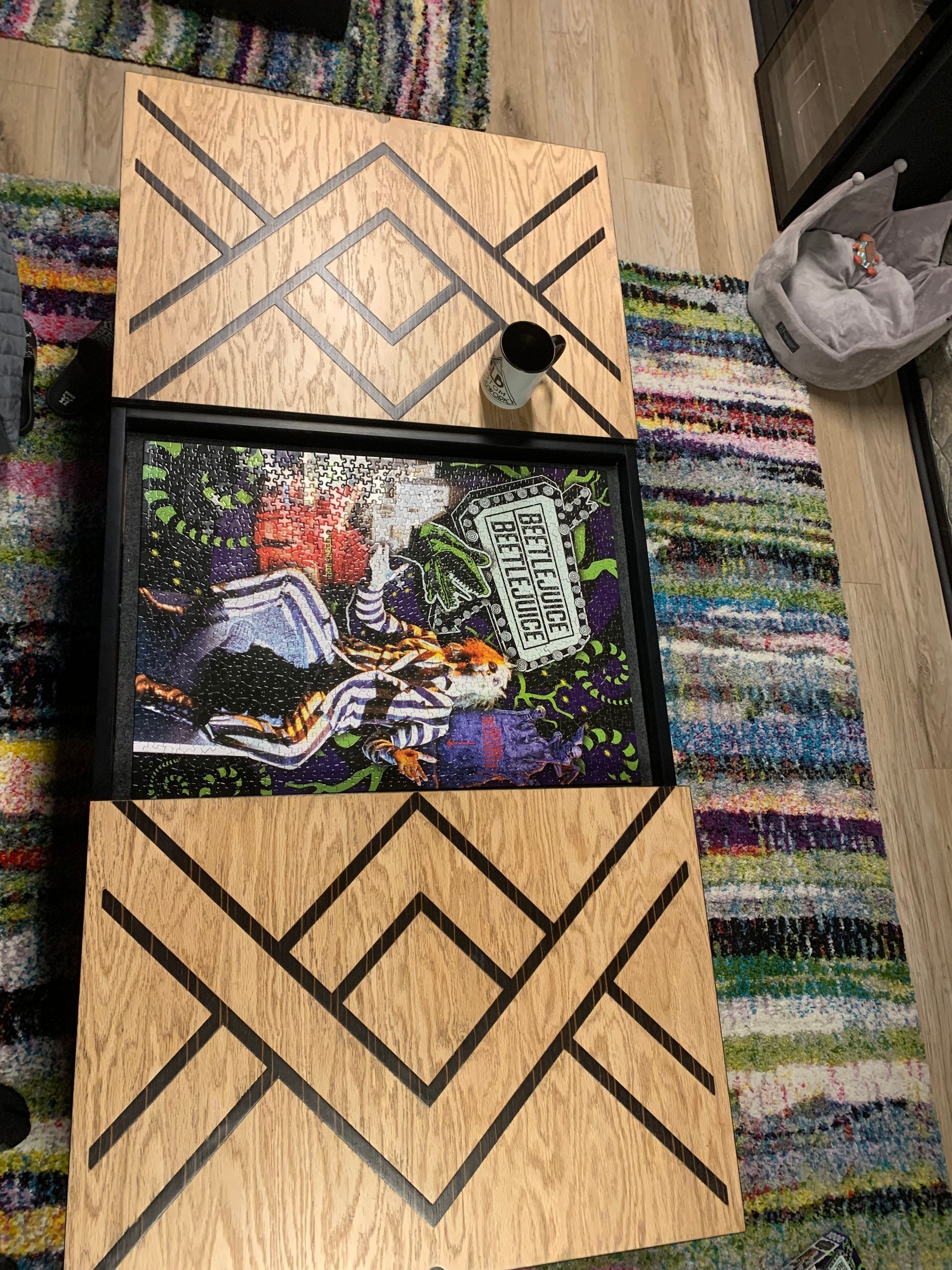 This was made as a special request from my wife for us to have a puzzle coffee table in our remodeled basement/theater room. I've been working more of a complete living room set based off of this design... coming soon!