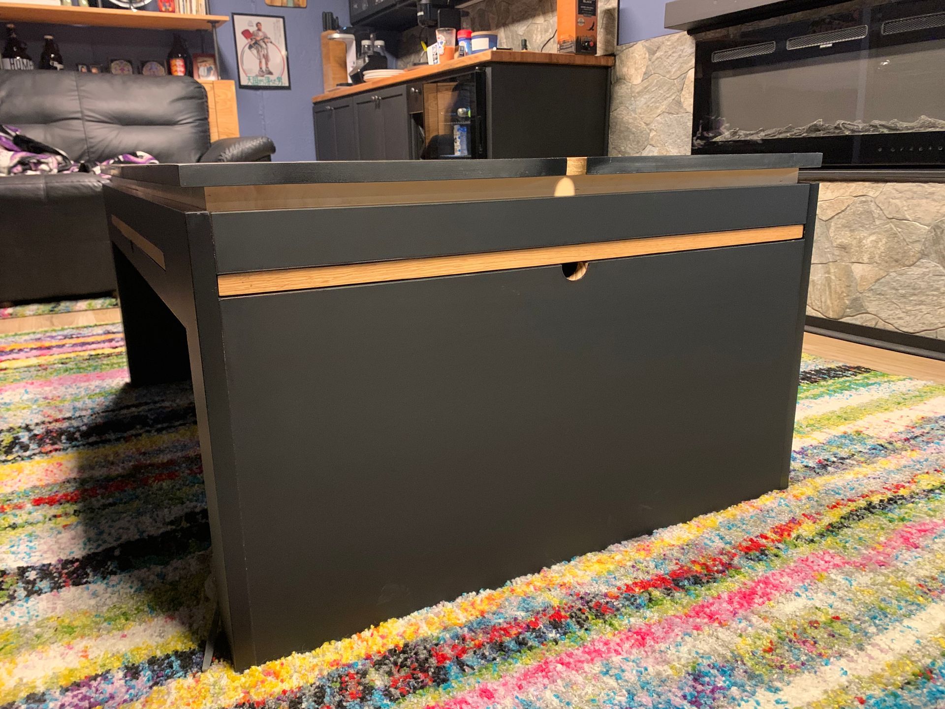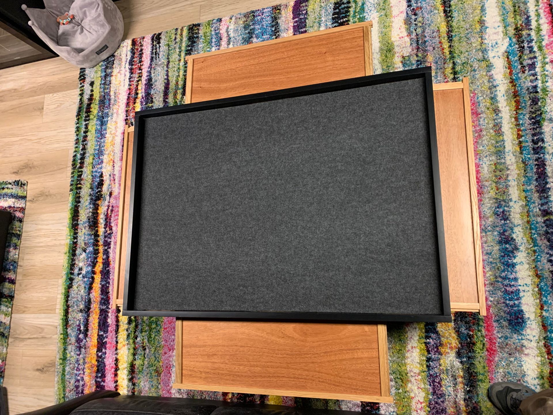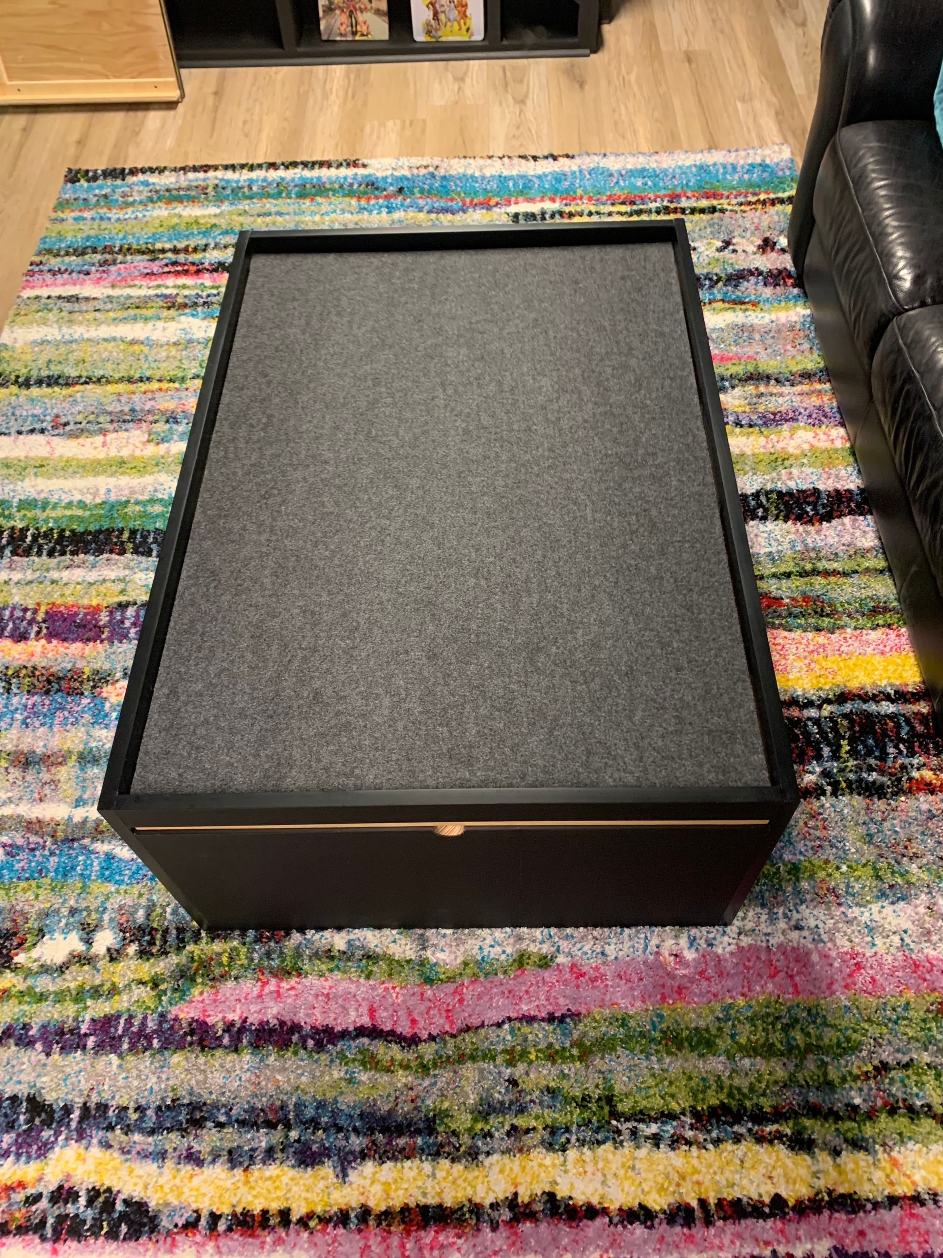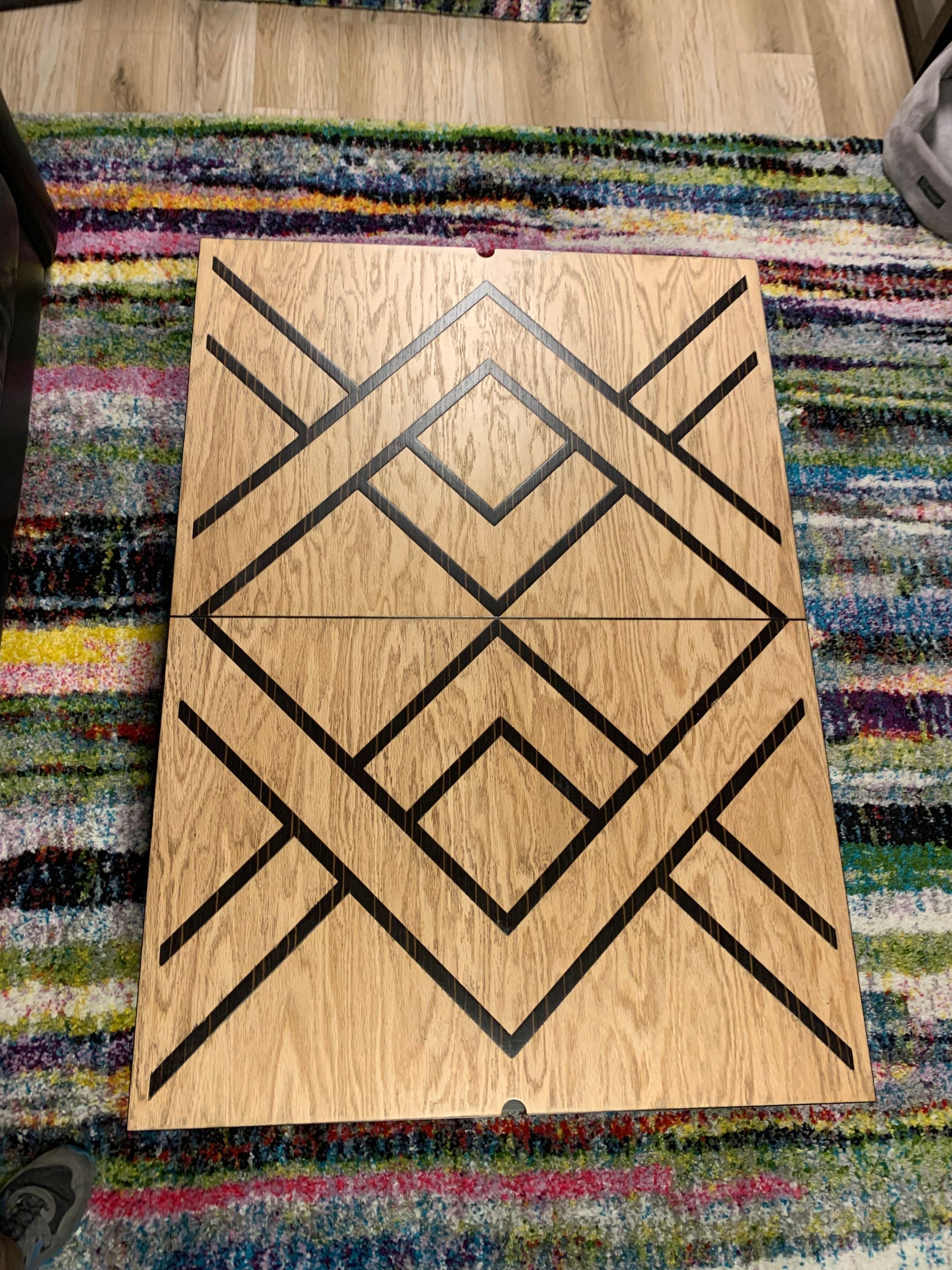 This was made as a special request from my wife for us to have a puzzle coffee table in our remodeled basement/theater room. I've been working more of a complete living room set based off of this design... coming soon!