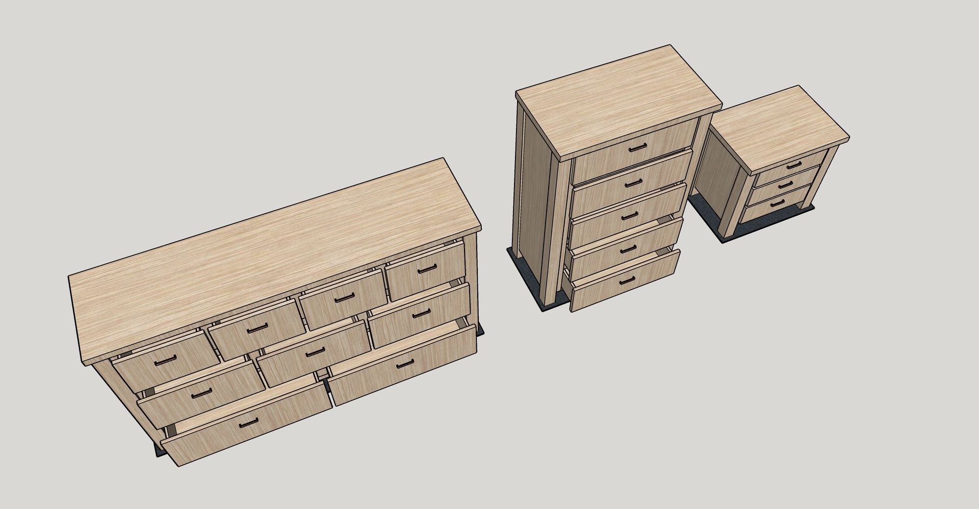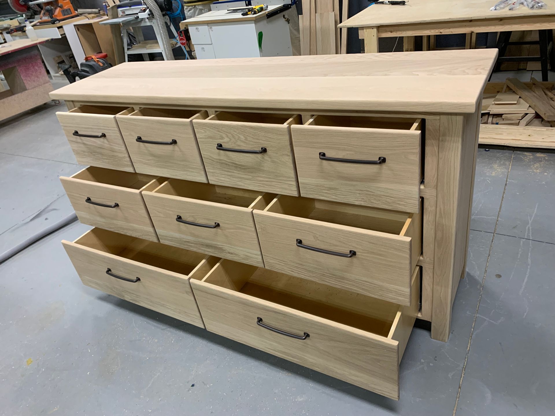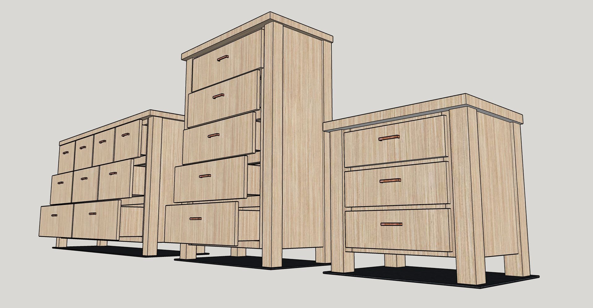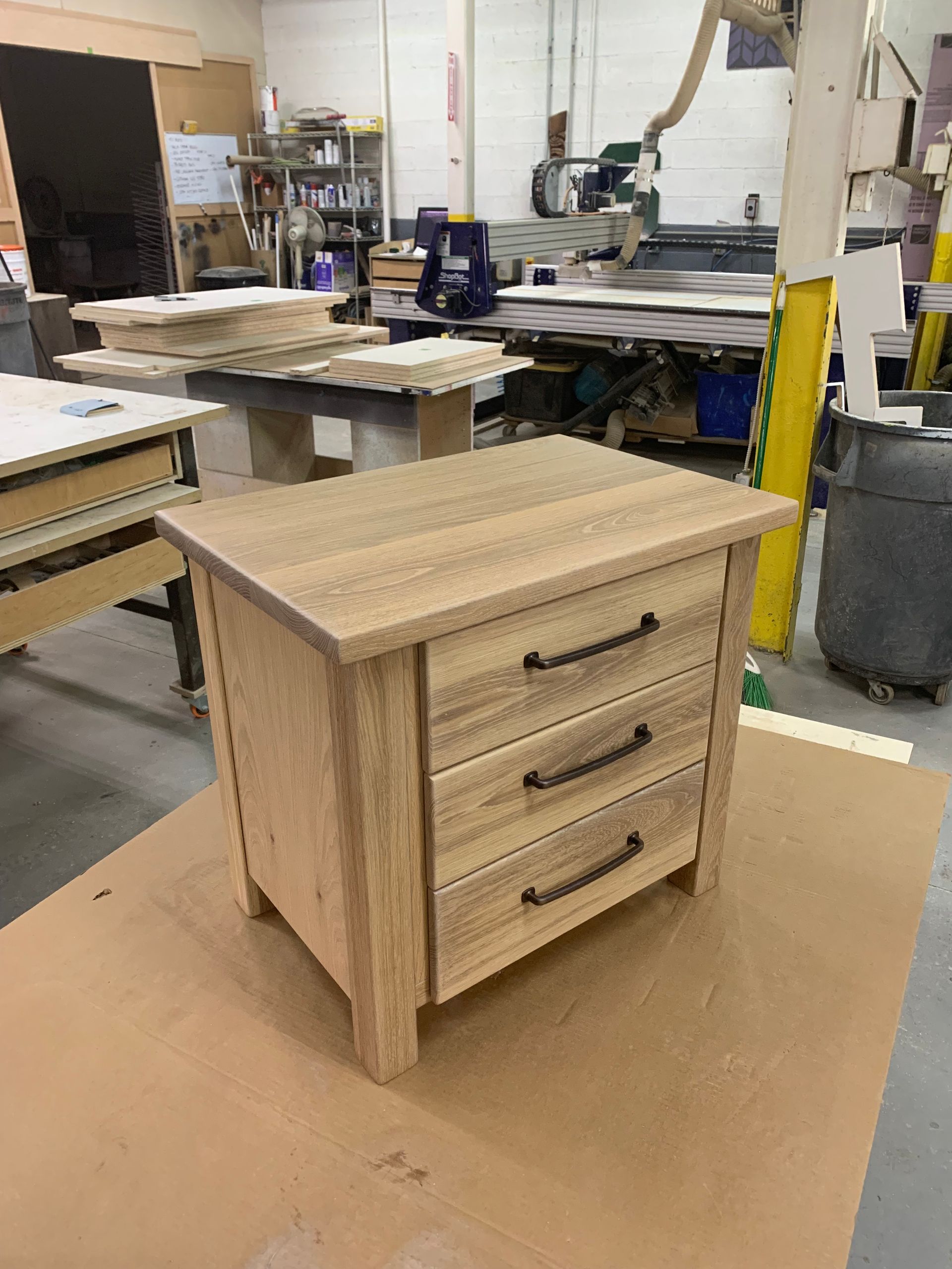 These pieces were an original "traditional" design for a young couple who had just purchased a white oak bed frame and wanted all new furniture to match. The build took longer than anticipated but turned out great! Finished with natural Rubio Monocoat, extra heavy duty undermount drawer slides, and antique brass pulls.