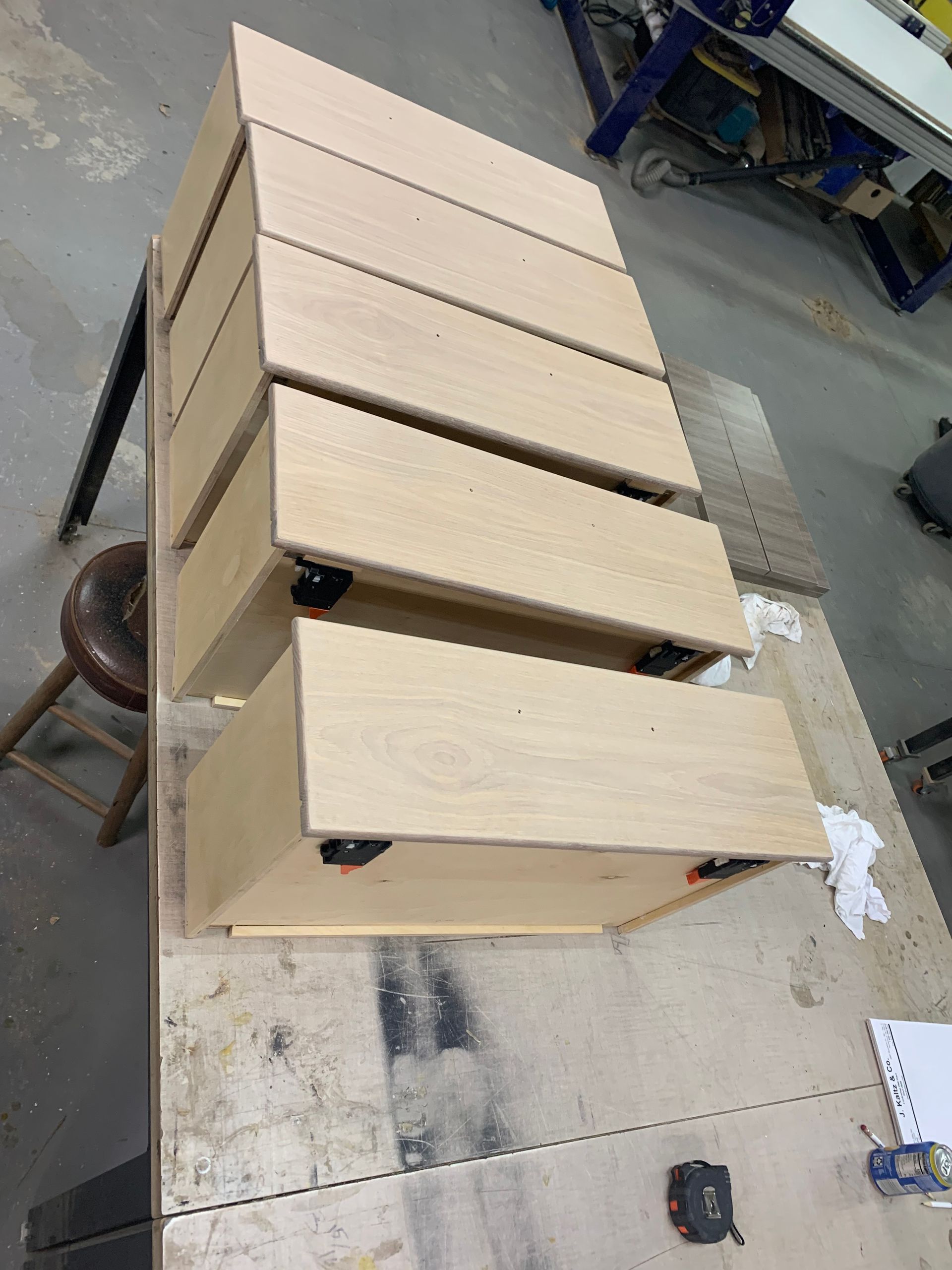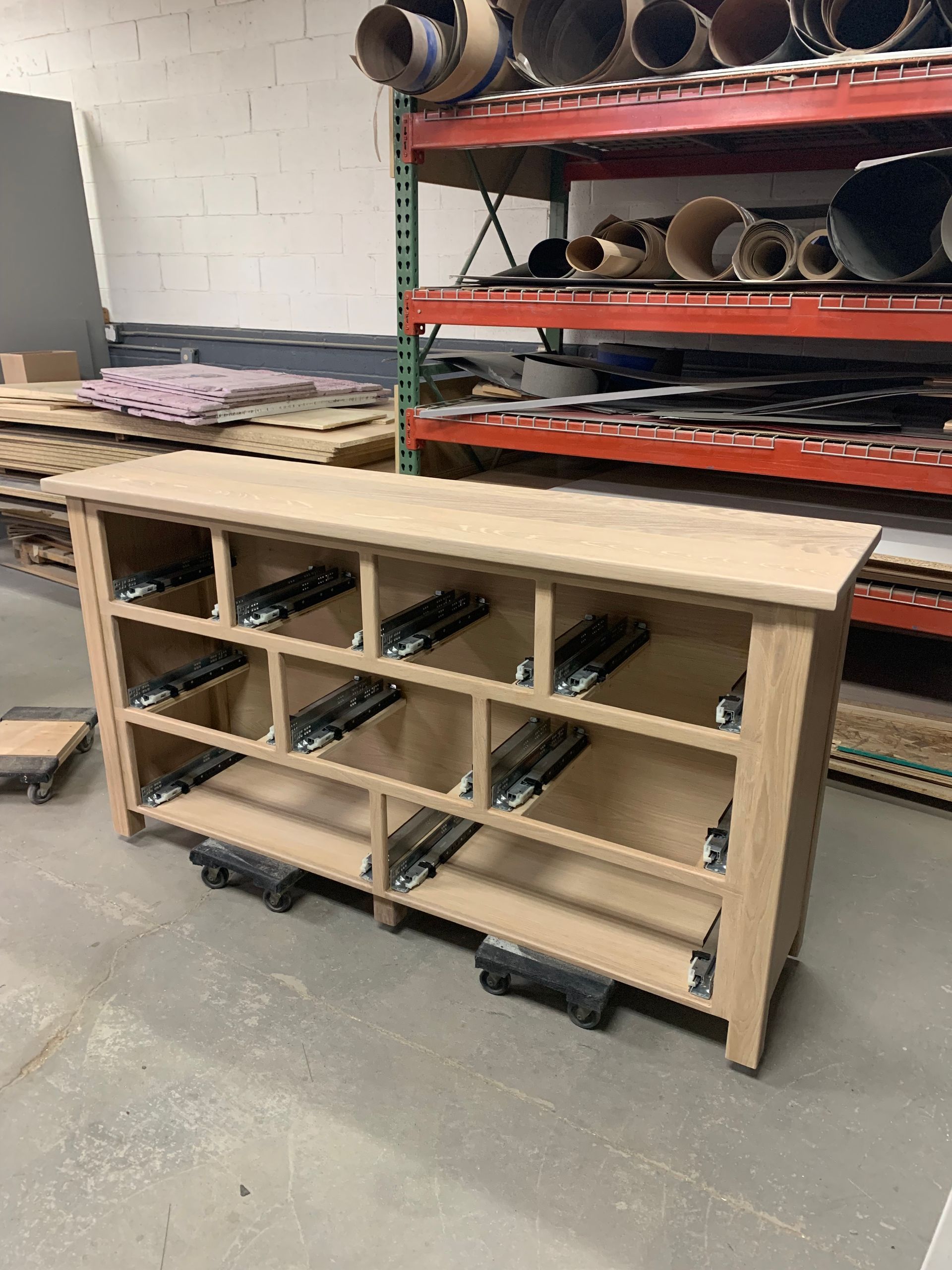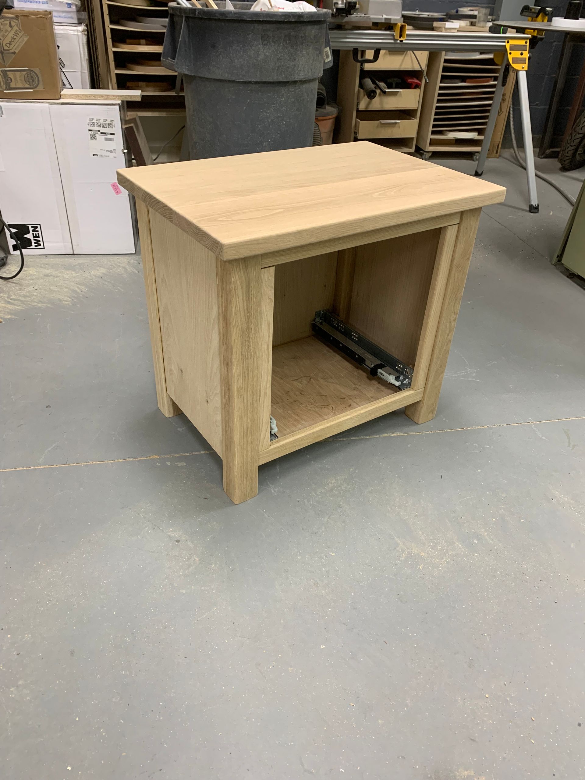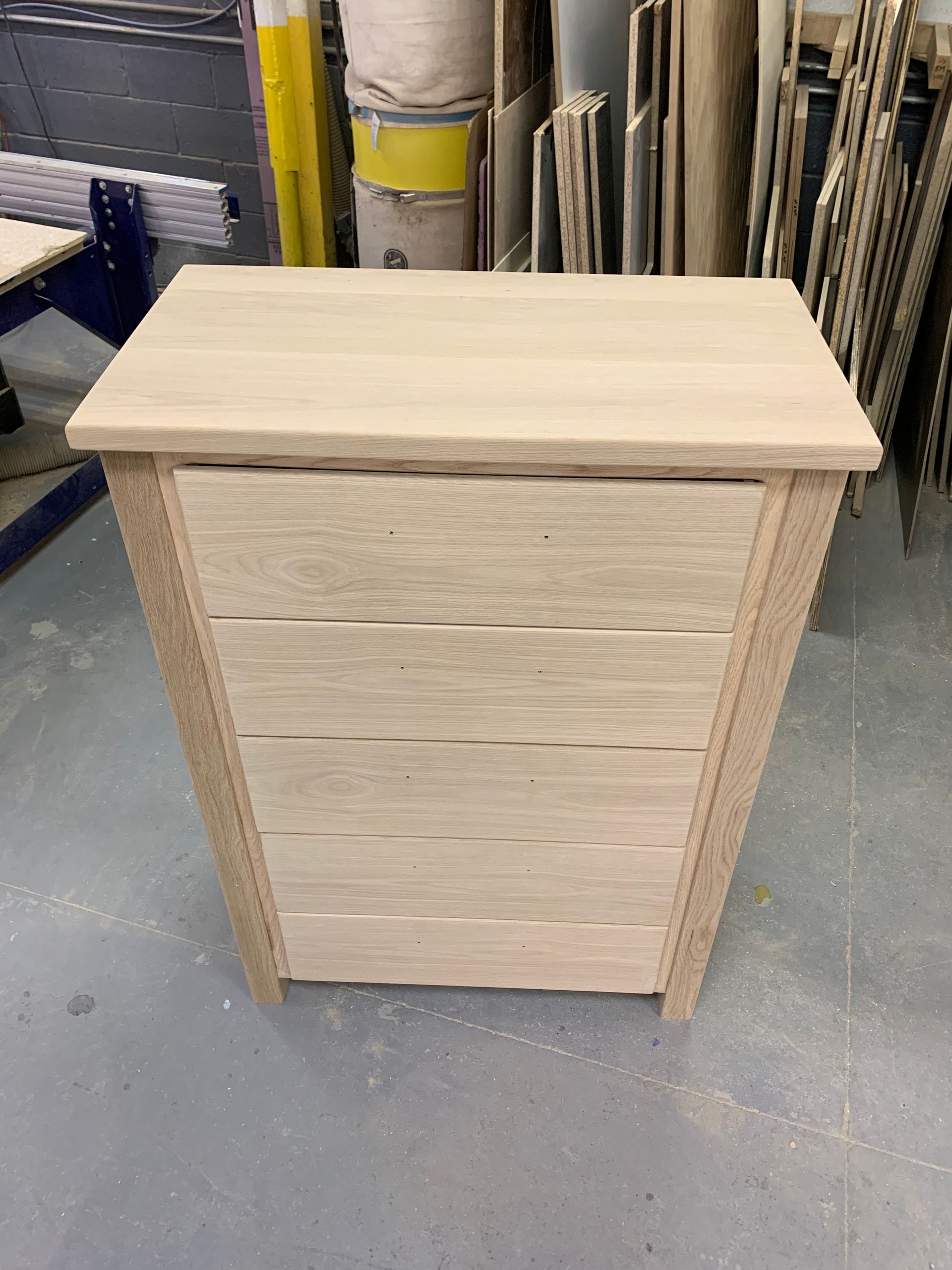 These pieces were an original "traditional" design for a young couple who had just purchased a white oak bed frame and wanted all new furniture to match. The build took longer than anticipated but turned out great! Finished with natural Rubio Monocoat, extra heavy duty undermount drawer slides, and antique brass pulls.