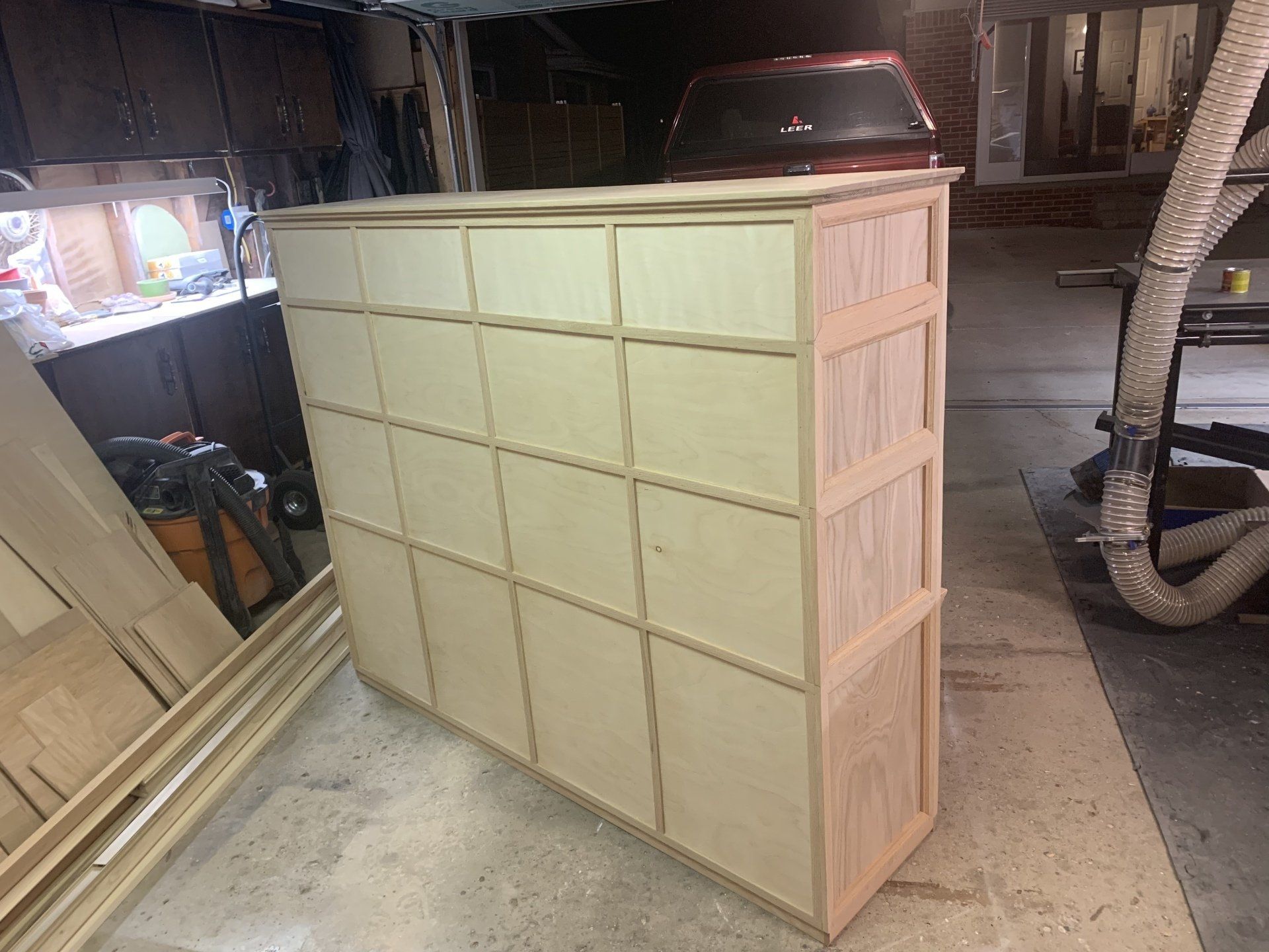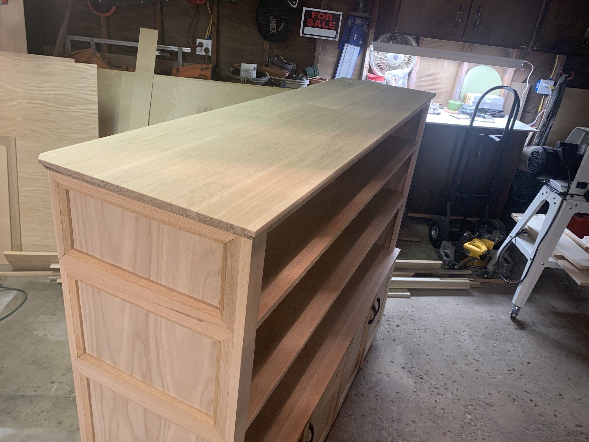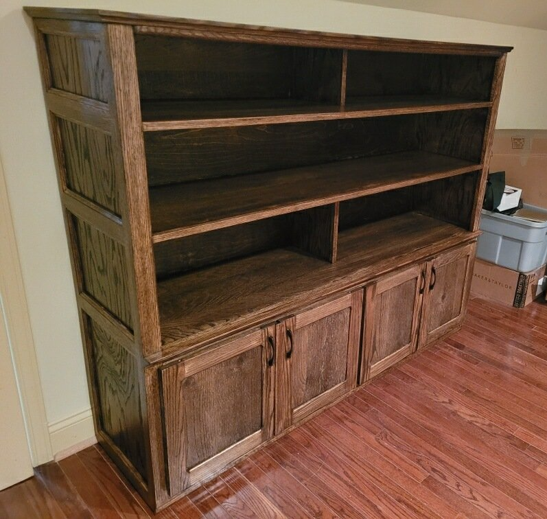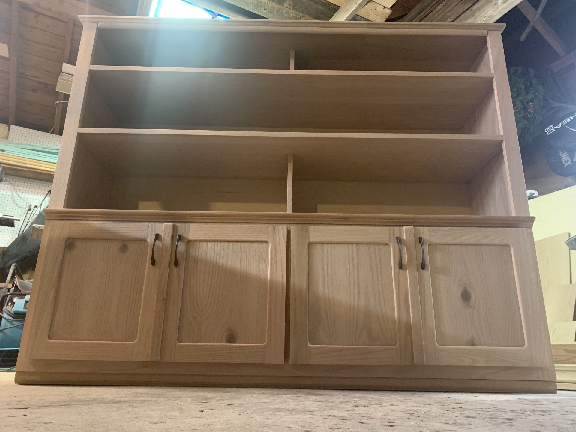 This piece went to a very nice family in Plymouth, and was designed and built specifically to the space to match the style and color of the existing furniture. Made from all red oak and stained with dark walnut. Finished with 4 coats of satin polyurethane. The customer was very excited to have the extra storage for her bedroom and build turned out great!