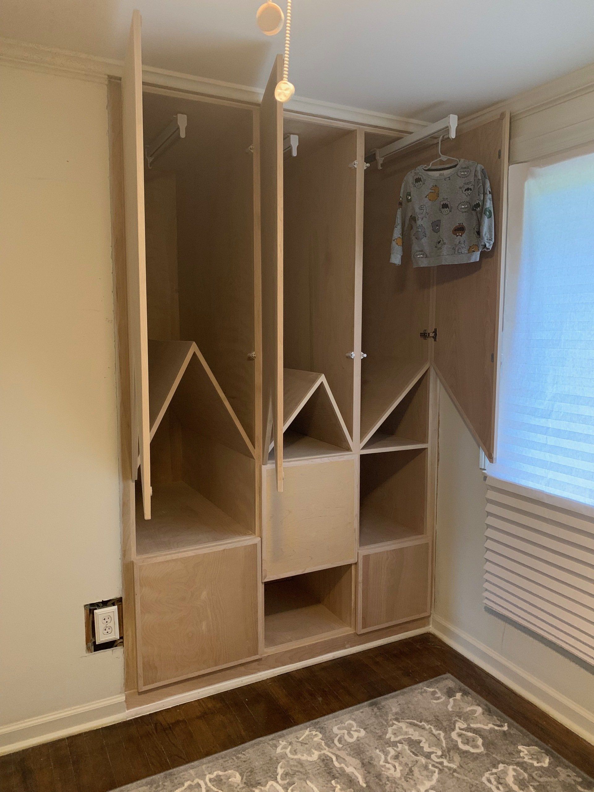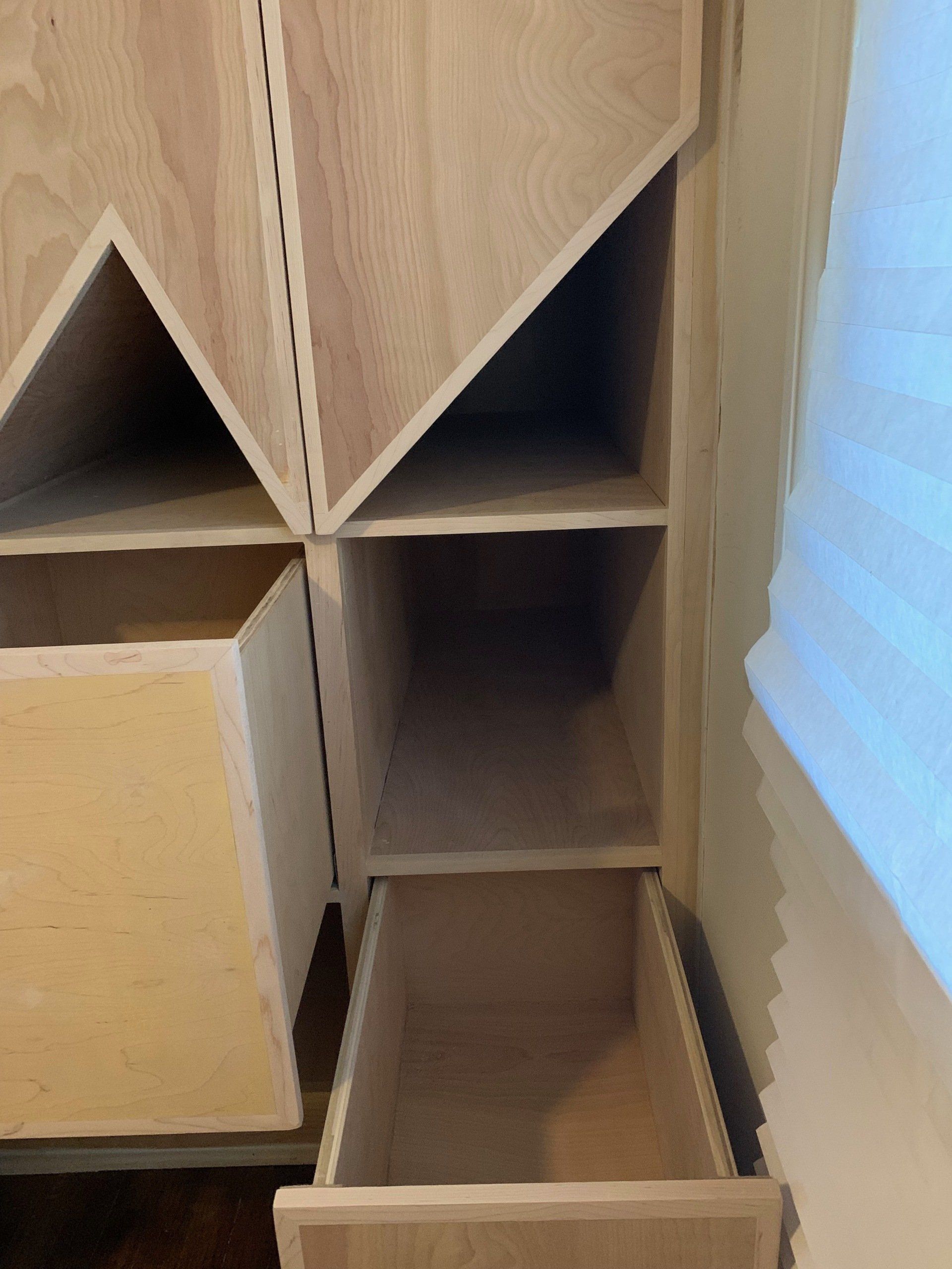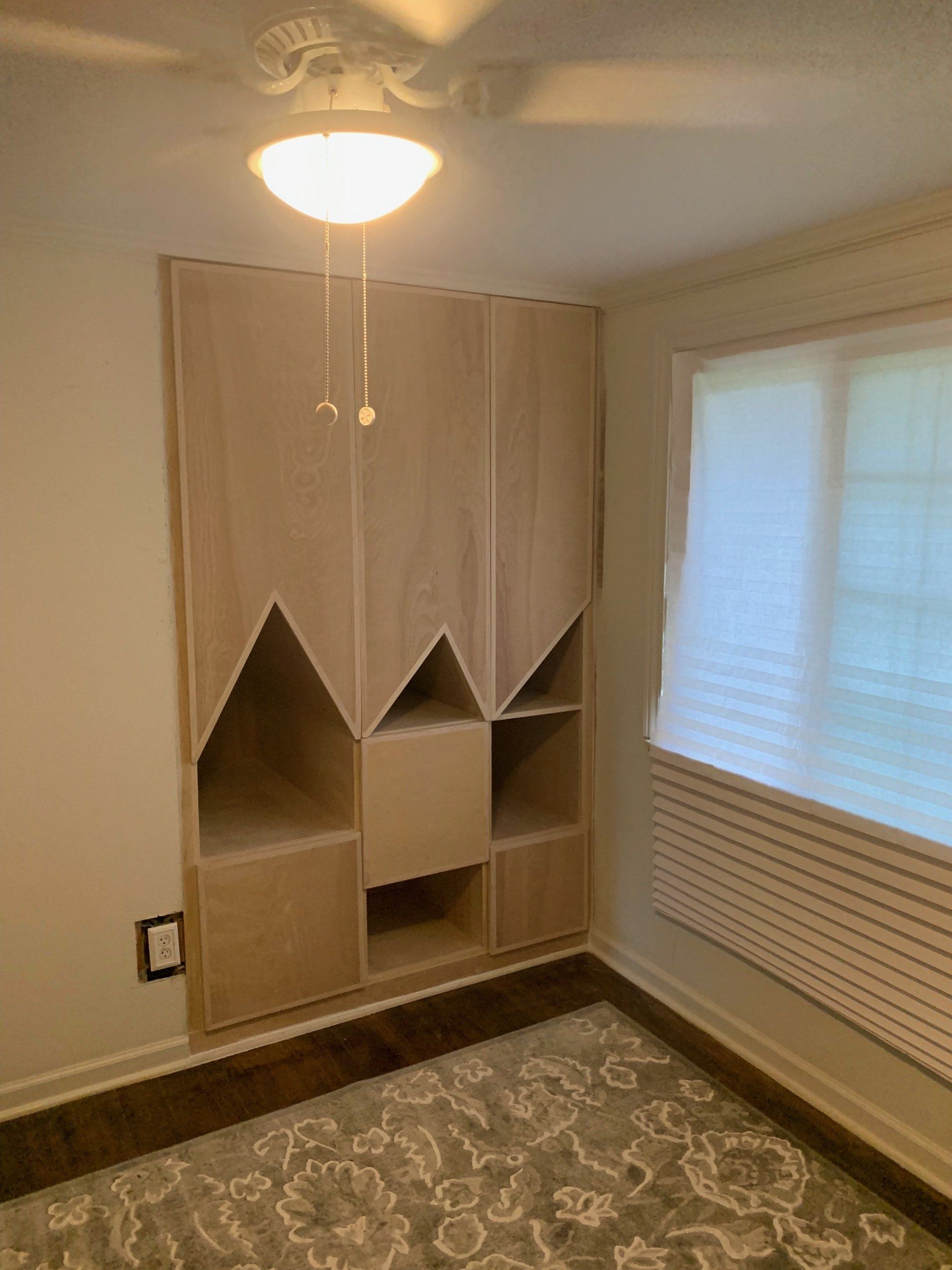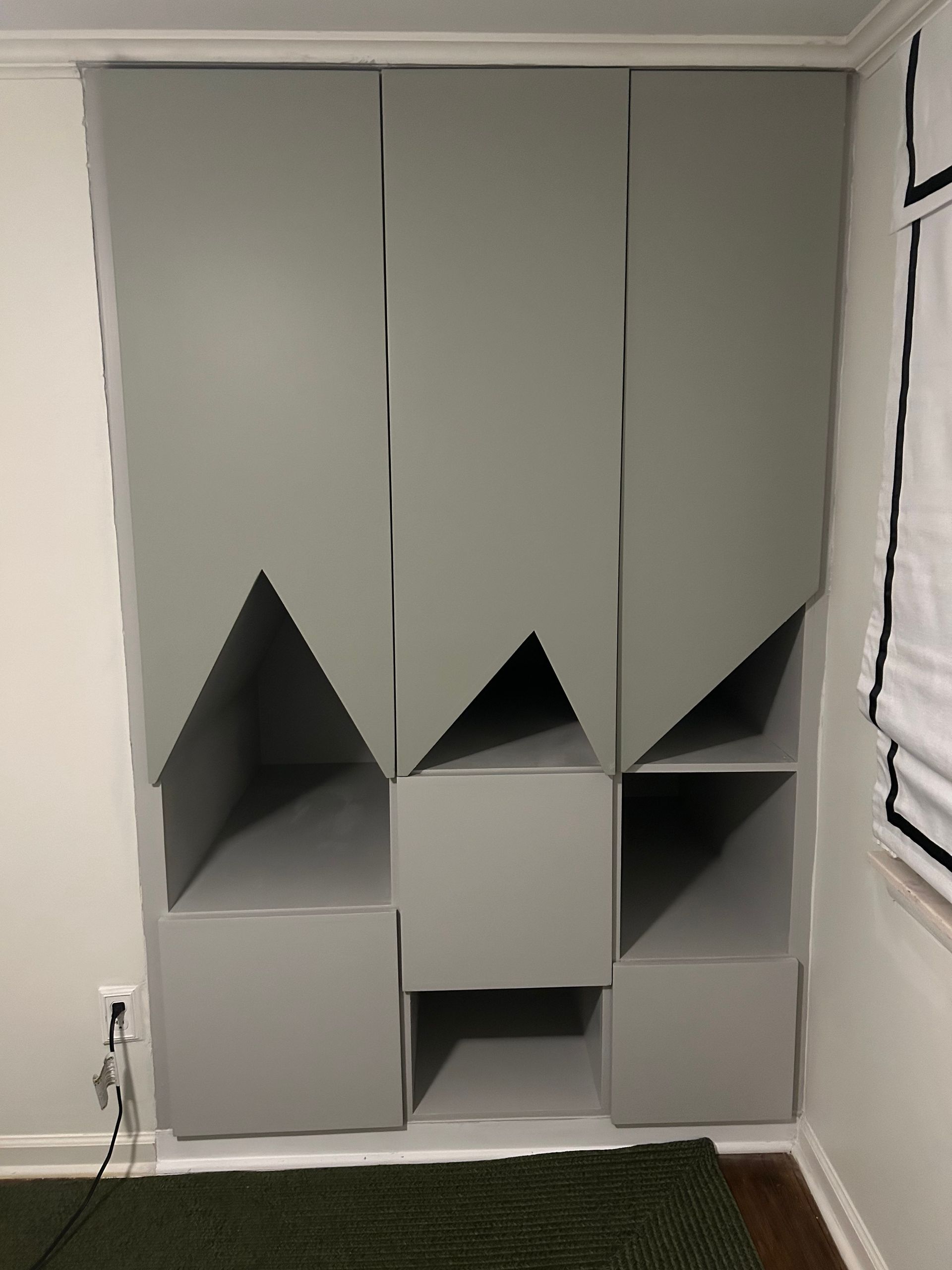 A good friend and coworker of mine sent me a few pictures from pinterest of what these homeowners wanted for their child's bedroom. I went out and took some measurements, drew up a plan and sent off the estimate. These cabinets are 48" deep, 6' long, and 9' tall! Lots of angles, dividers, drawers, etc... but in the end it turned out great. Another happy customer with a one of a kind custom build.