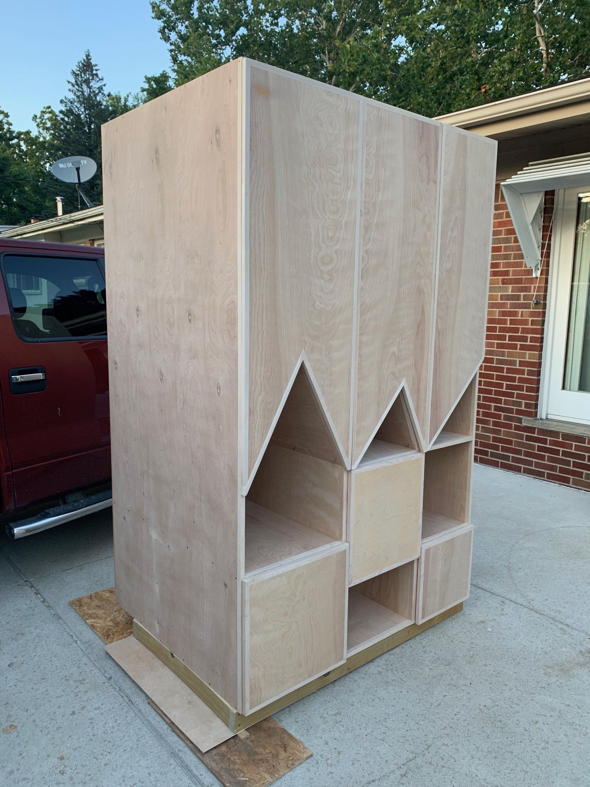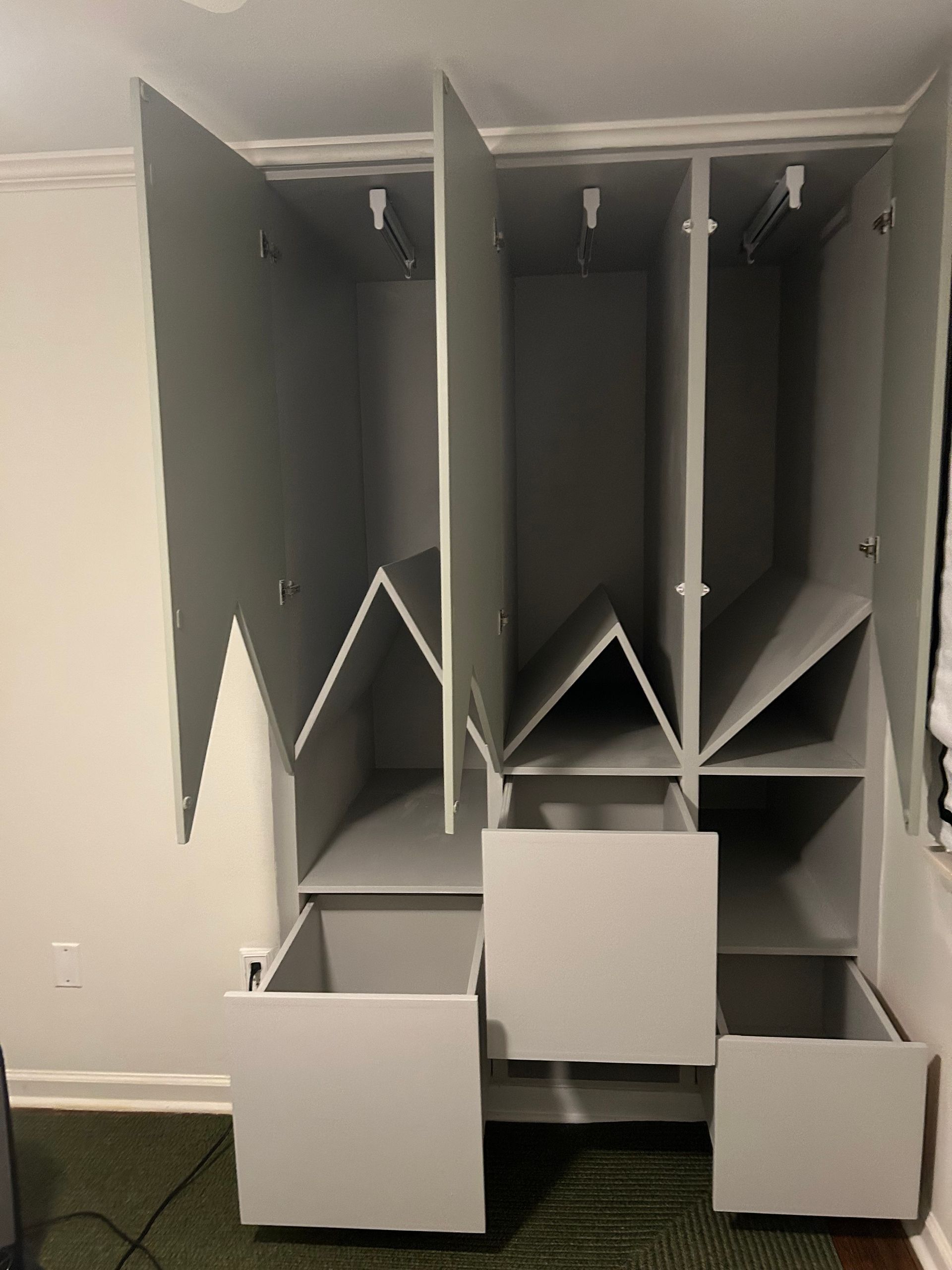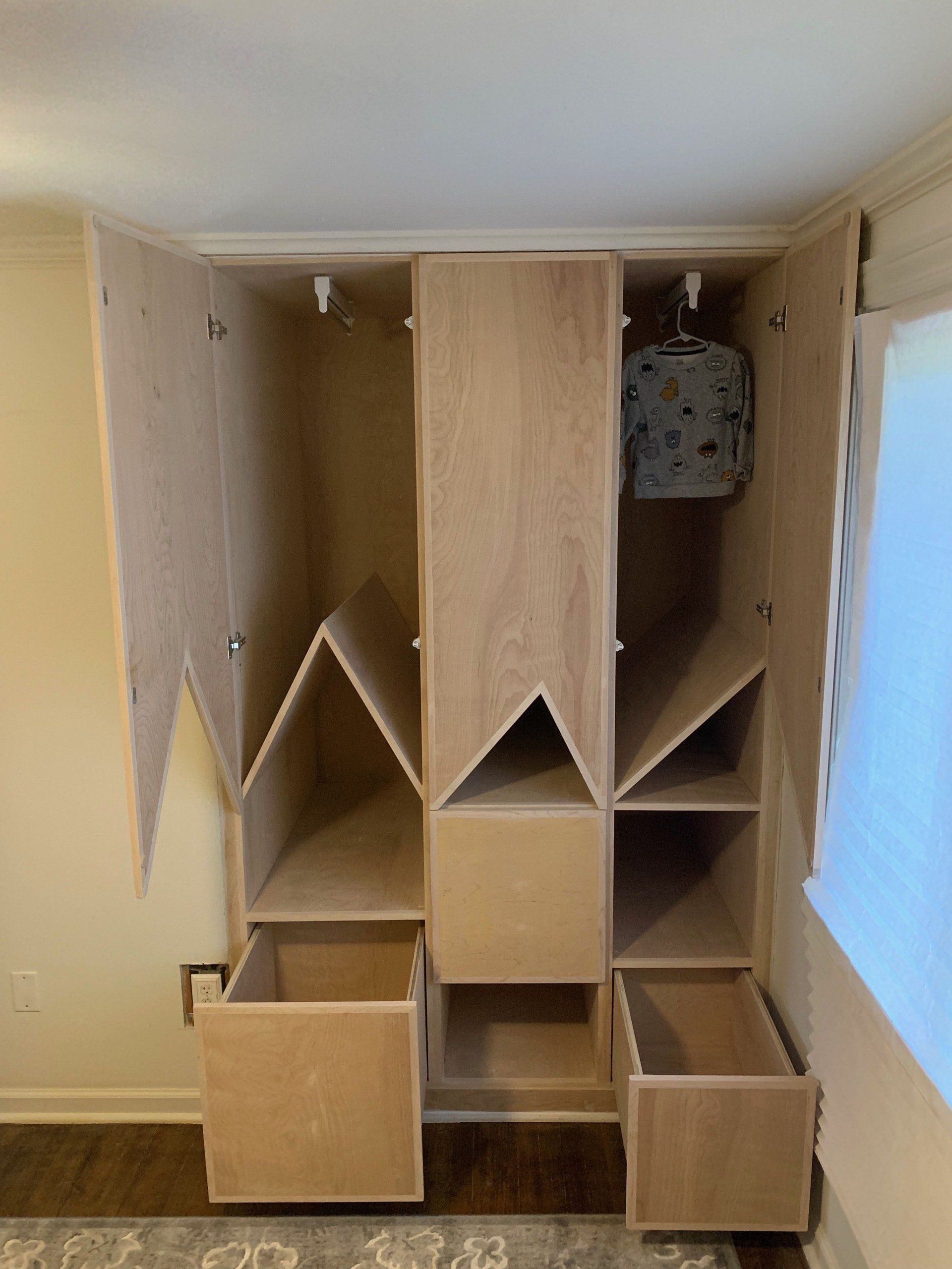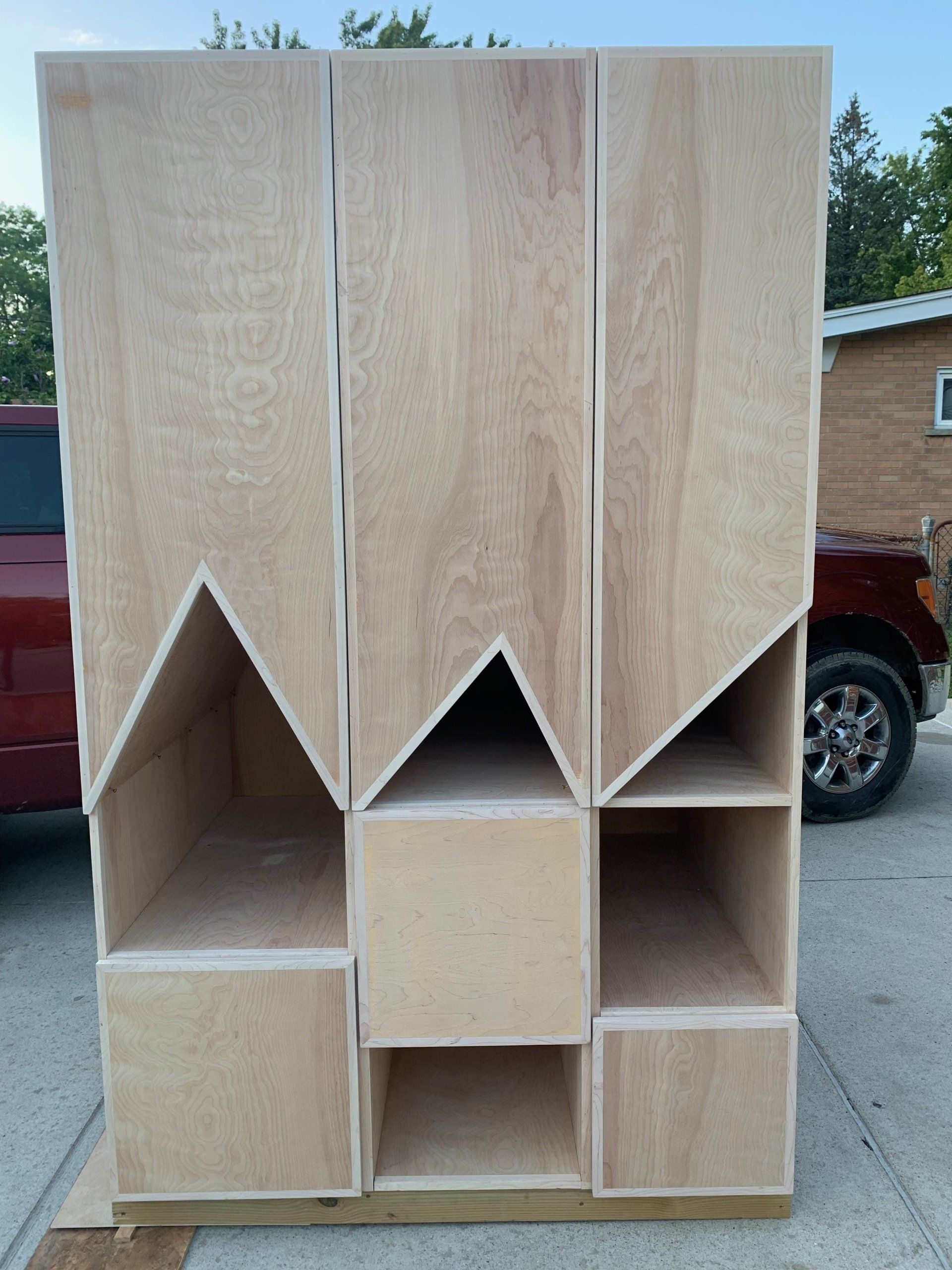A good friend and coworker of mine sent me a few pictures from pinterest of what these homeowners wanted for their child's bedroom. I went out and took some measurements, drew up a plan and sent off the estimate. These cabinets are 48" deep, 6' long, and 9' tall! Lots of angles, dividers, drawers, etc... but in the end it turned out great. Another happy customer with a one of a kind custom build.