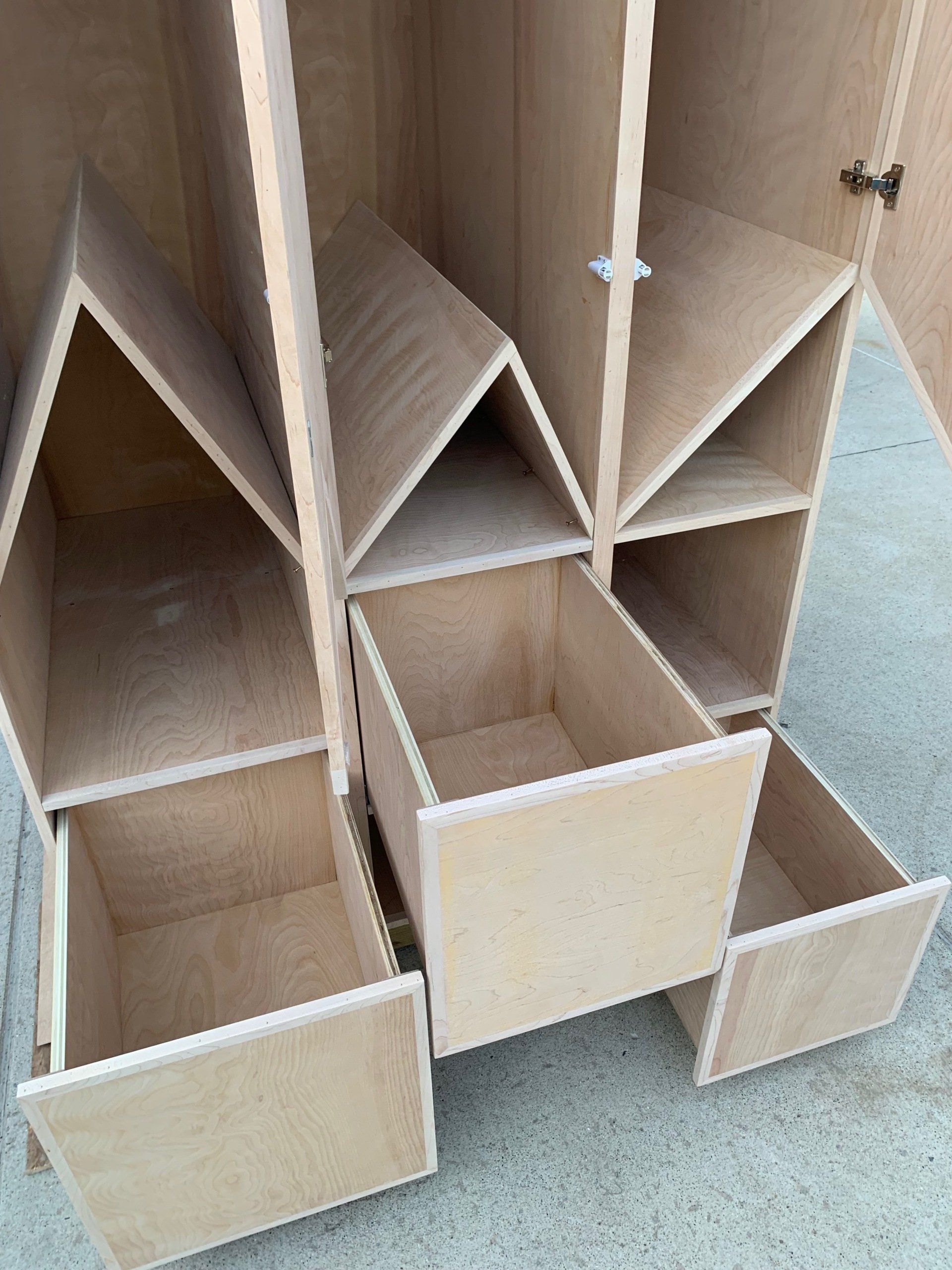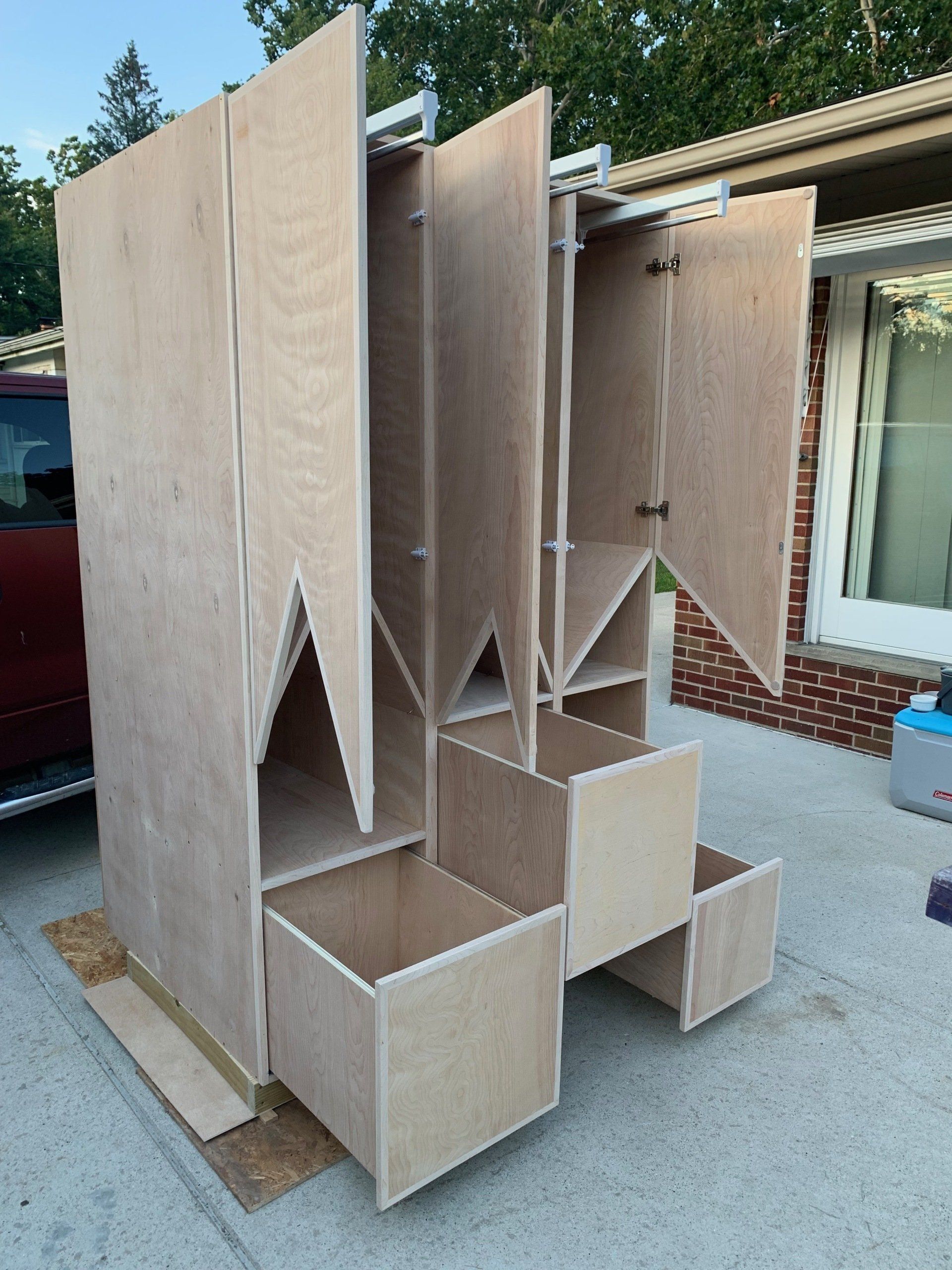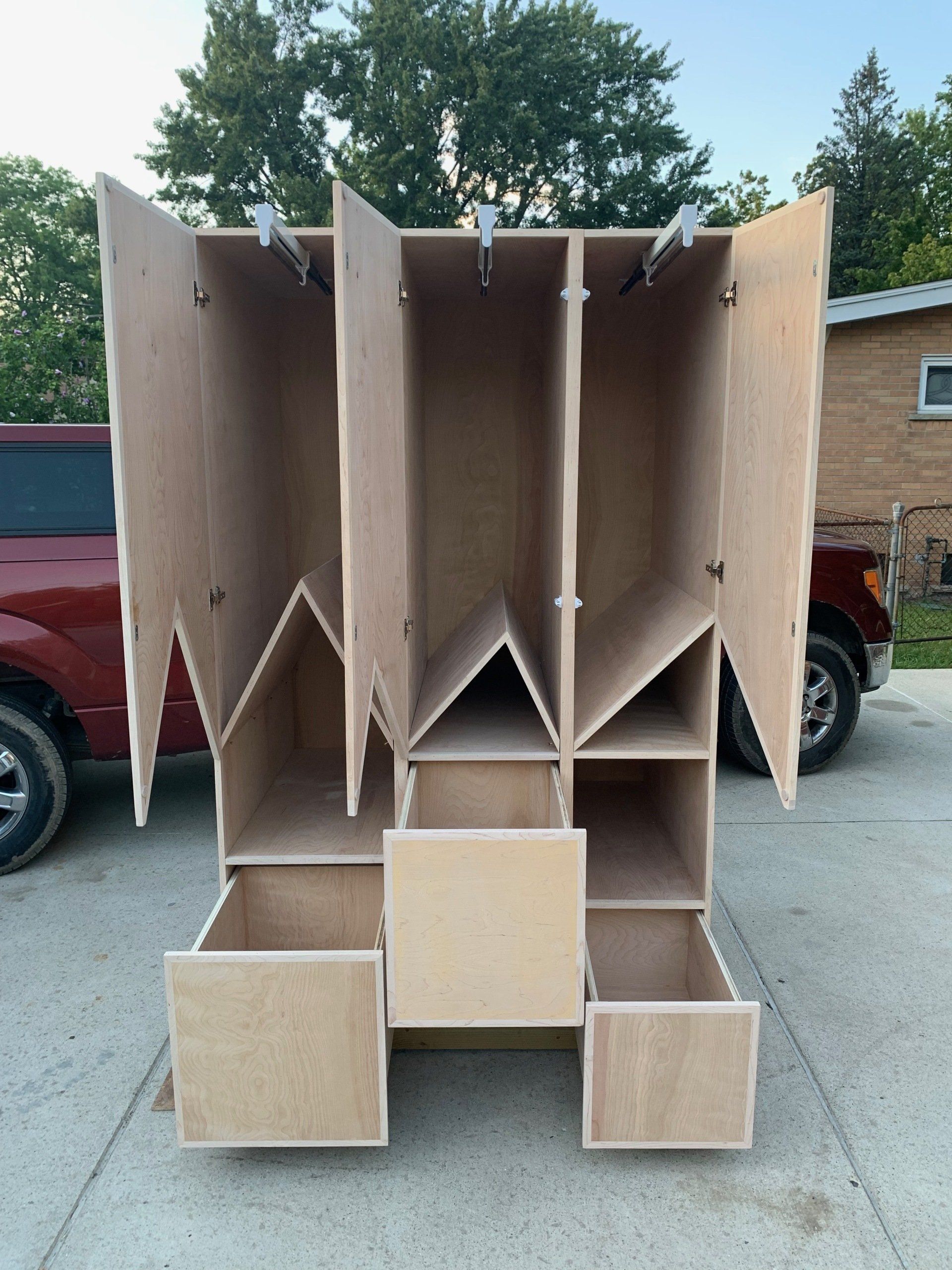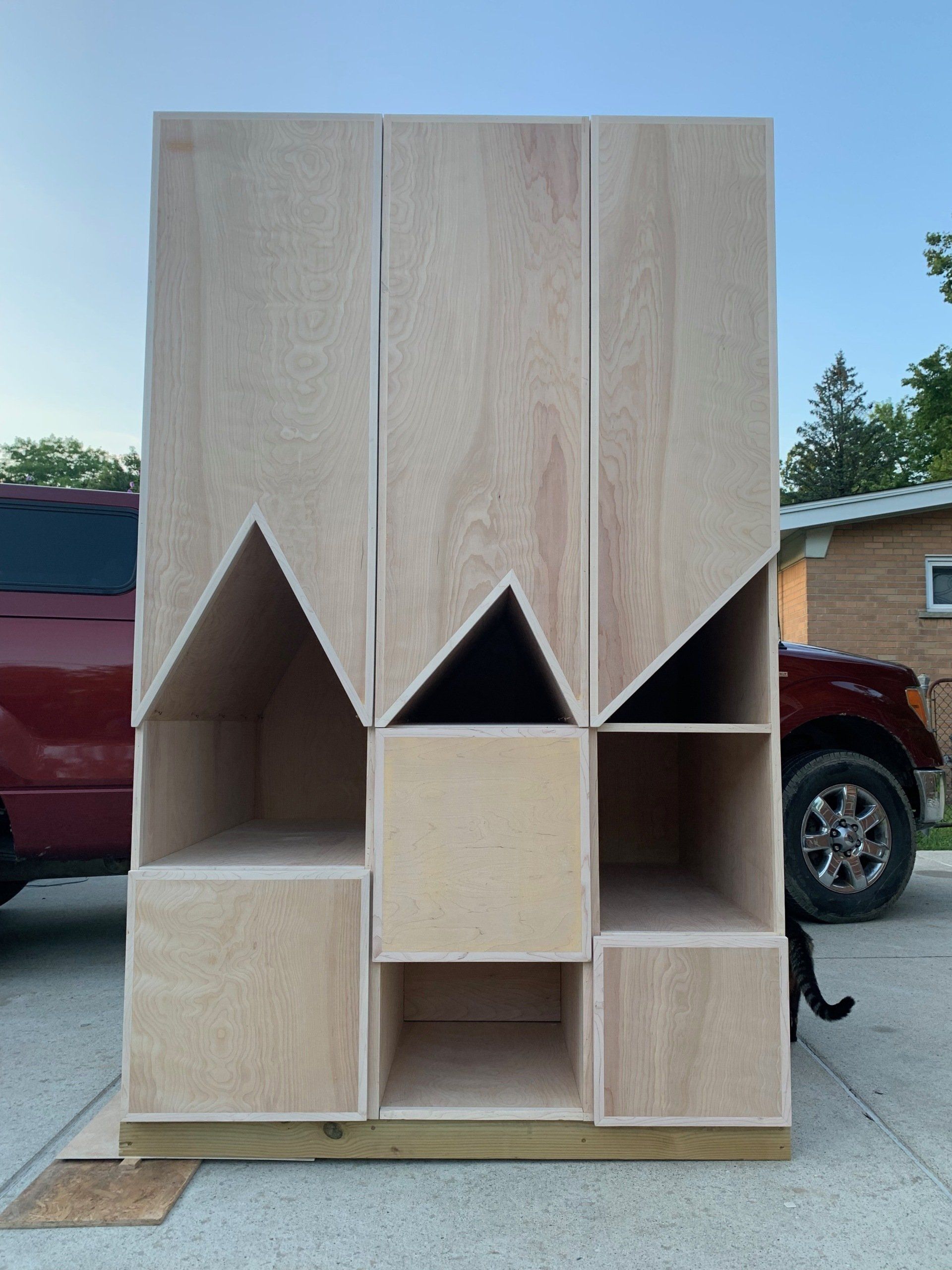 A good friend and coworker of mine sent me a few pictures from pinterest of what these homeowners wanted for their child's bedroom. I went out and took some measurements, drew up a plan and sent off the estimate. These cabinets are 48" deep, 6' long, and 9' tall! Lots of angles, dividers, drawers, etc... but in the end it turned out great. Another happy customer with a one of a kind custom build.